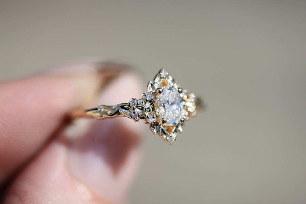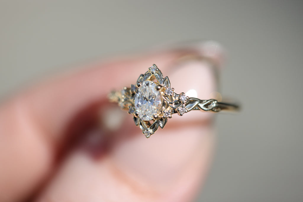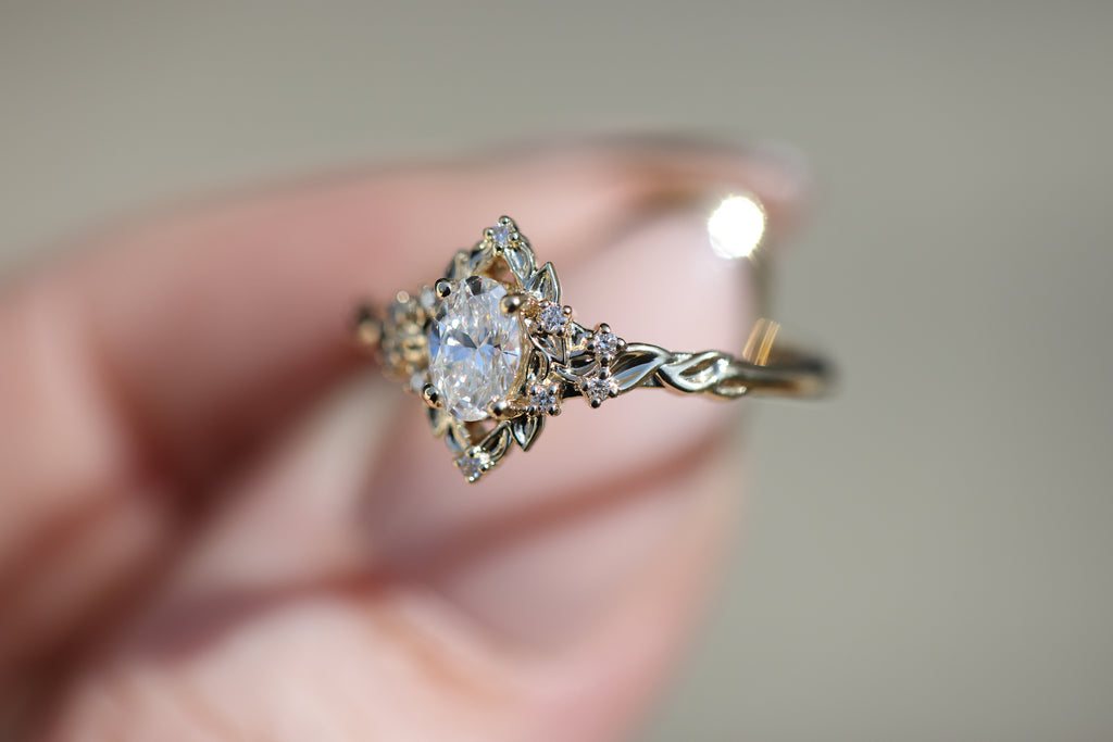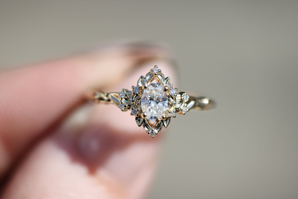 - 6x4mm oval lab diamond (DEF color, VVS2 clarity or better)