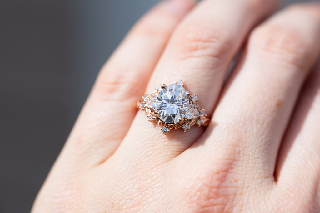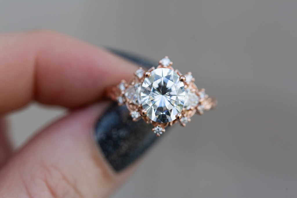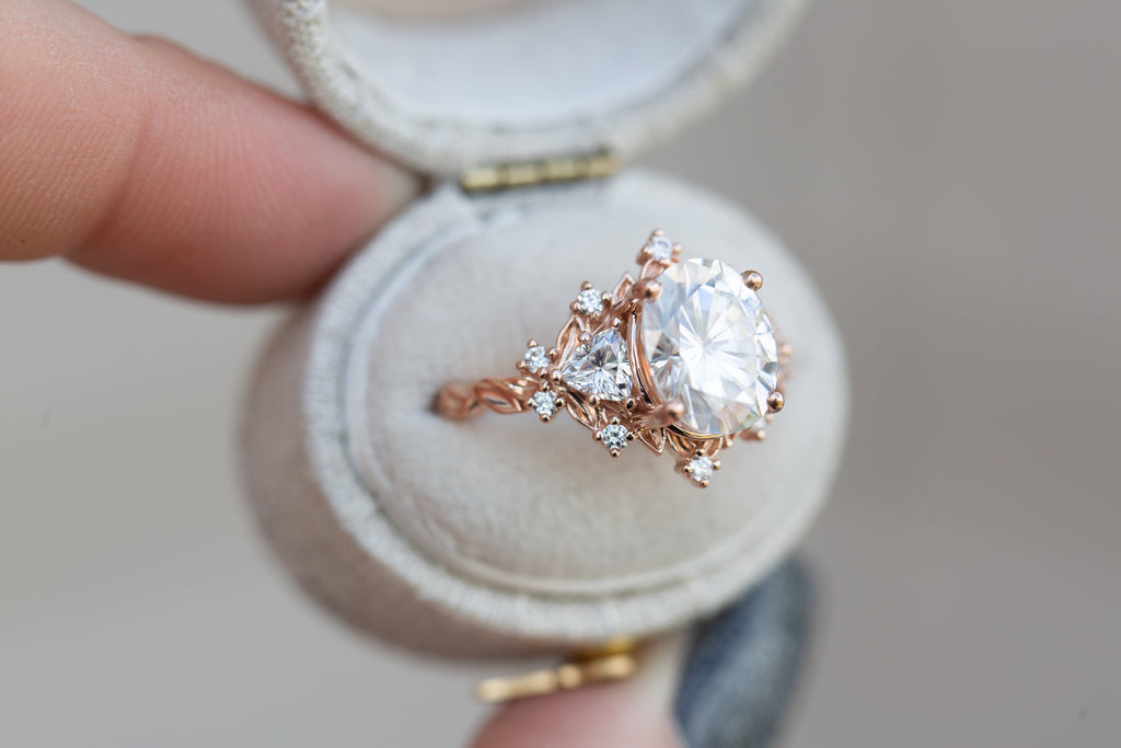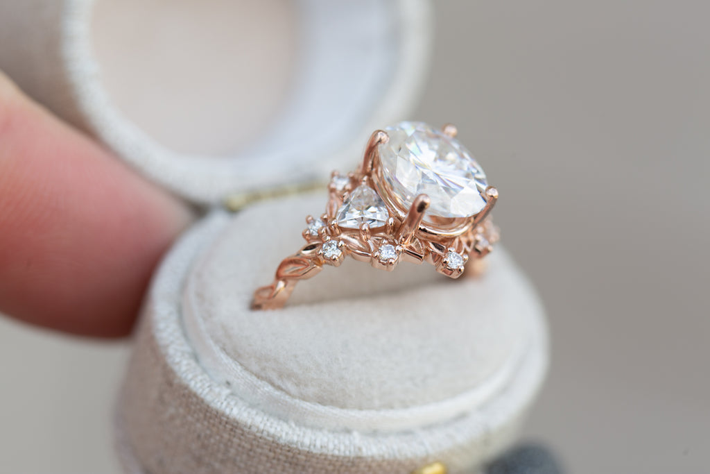 Briar Rose Three Stone with 10x8mm moissanite center