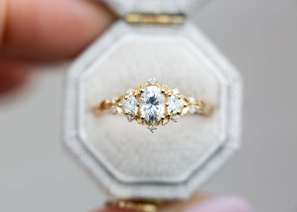 - 6x4mm oval DEF moissanite center
