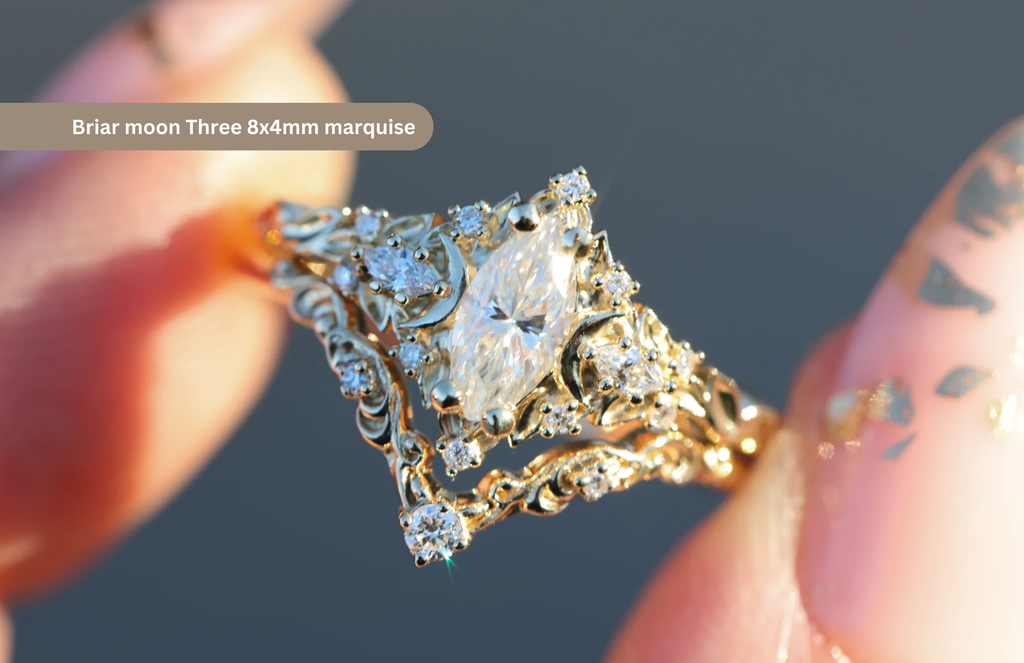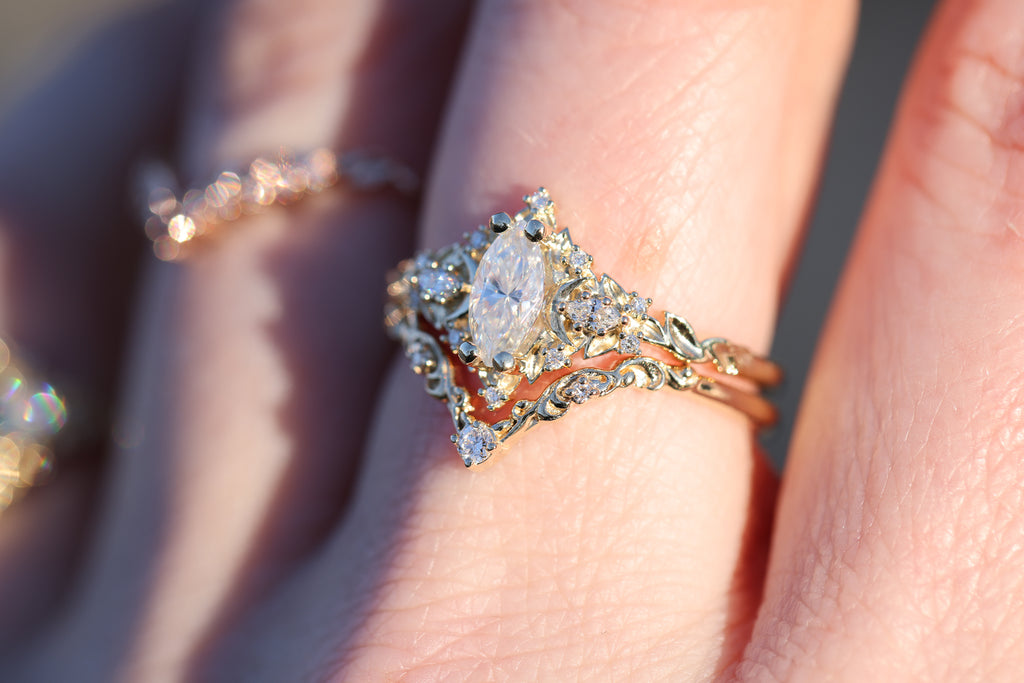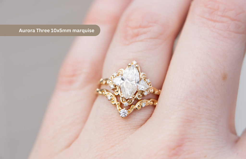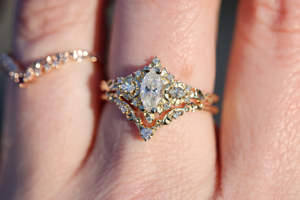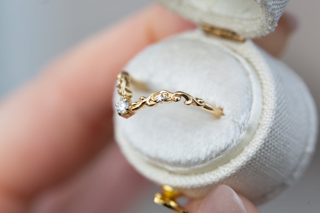 - Deep curved filigree. This is a very deep curve so looks best with my Aurora three stone or another ring that needs a deep curve
