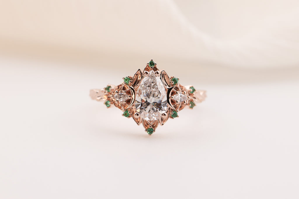 Customize your own Briar Moon Three Stone with 8x5mm pear center