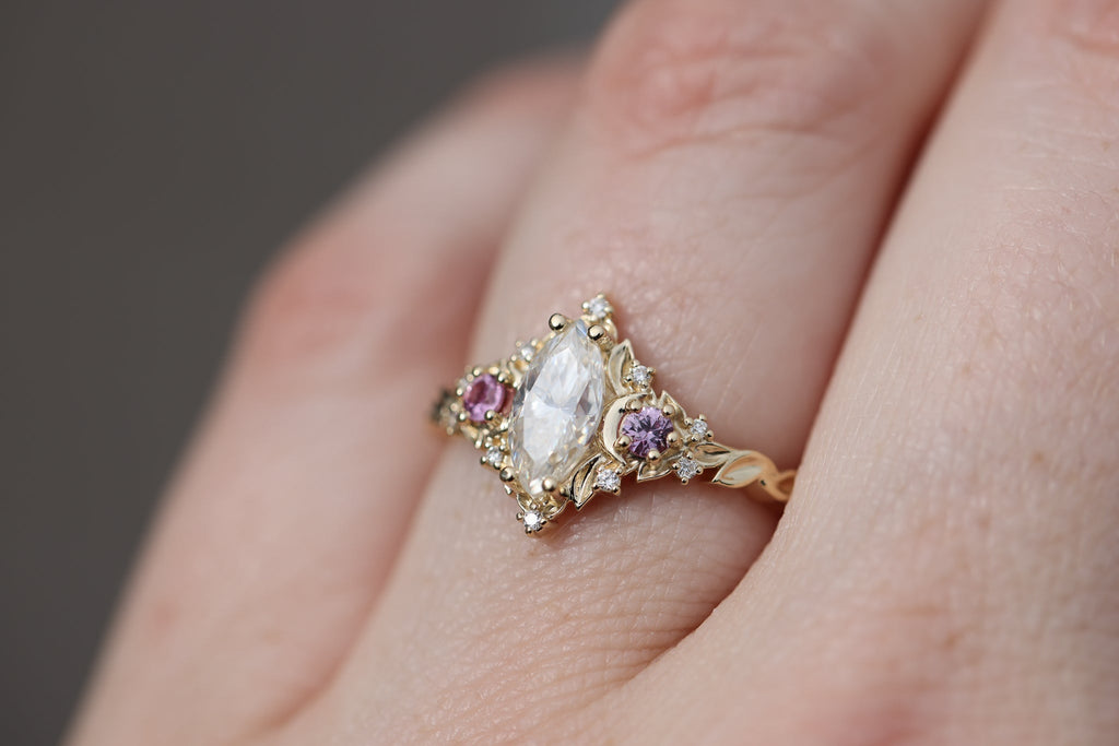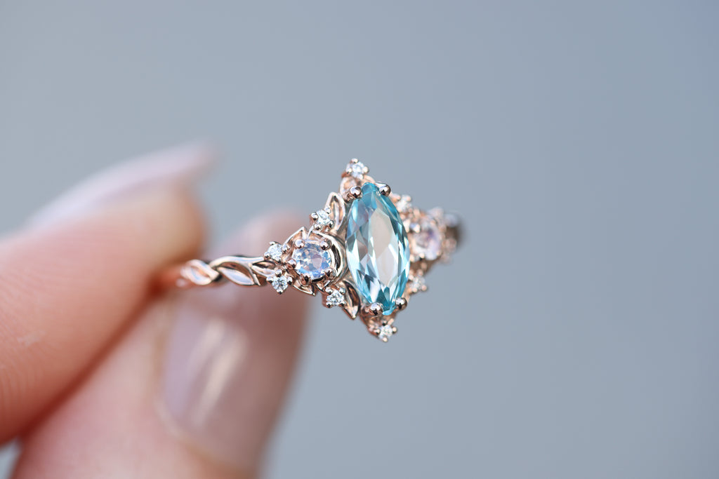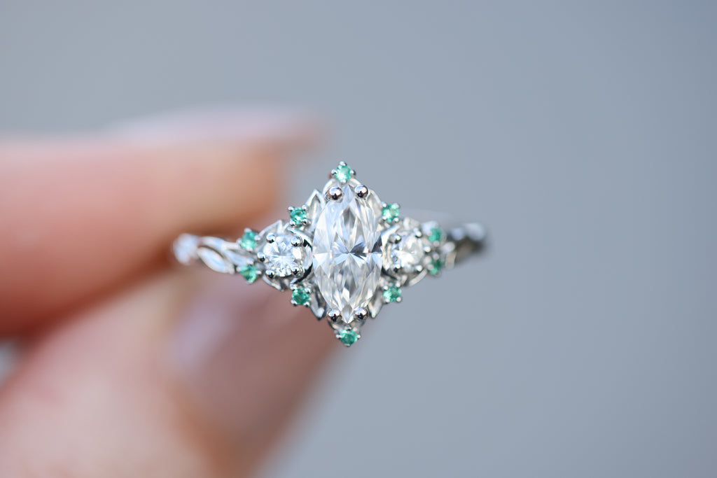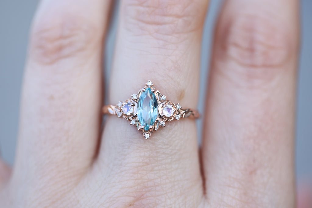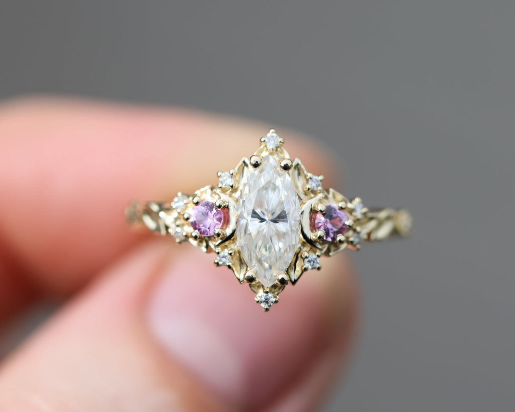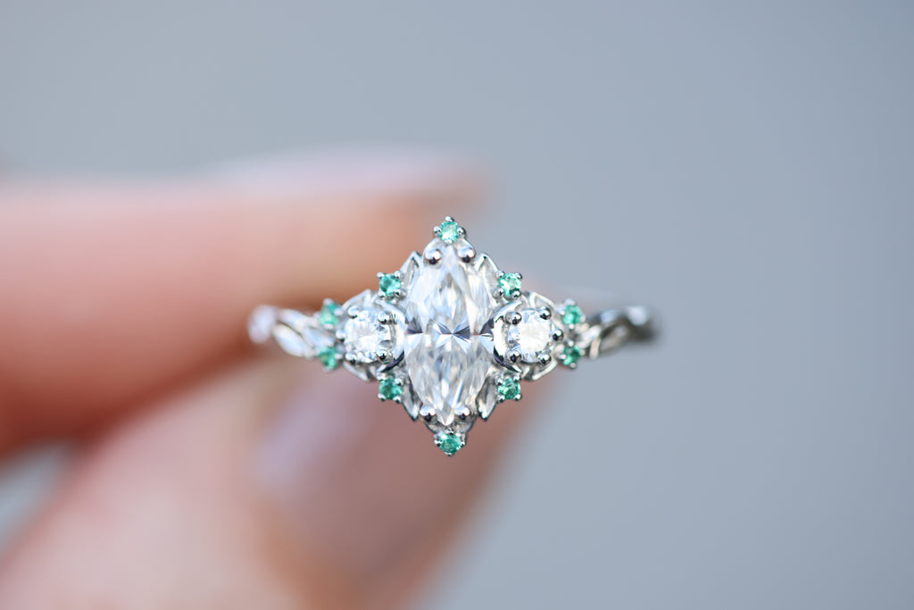 Customize your own Briar Moon Three Stone with marquise center and round sides