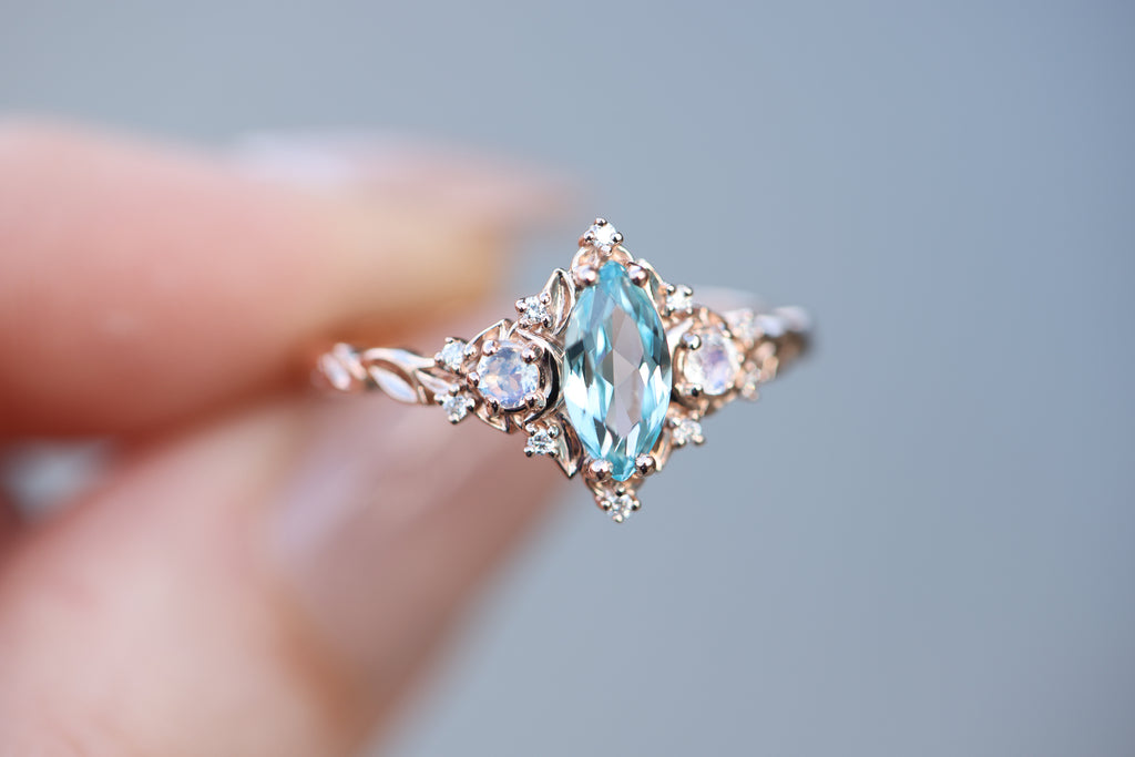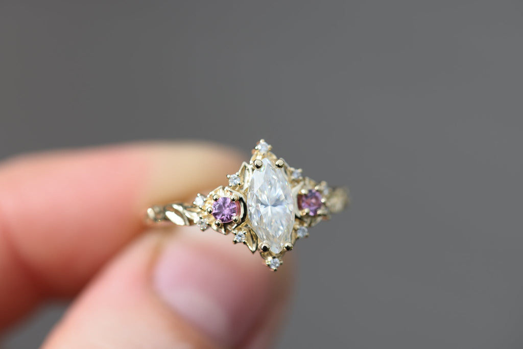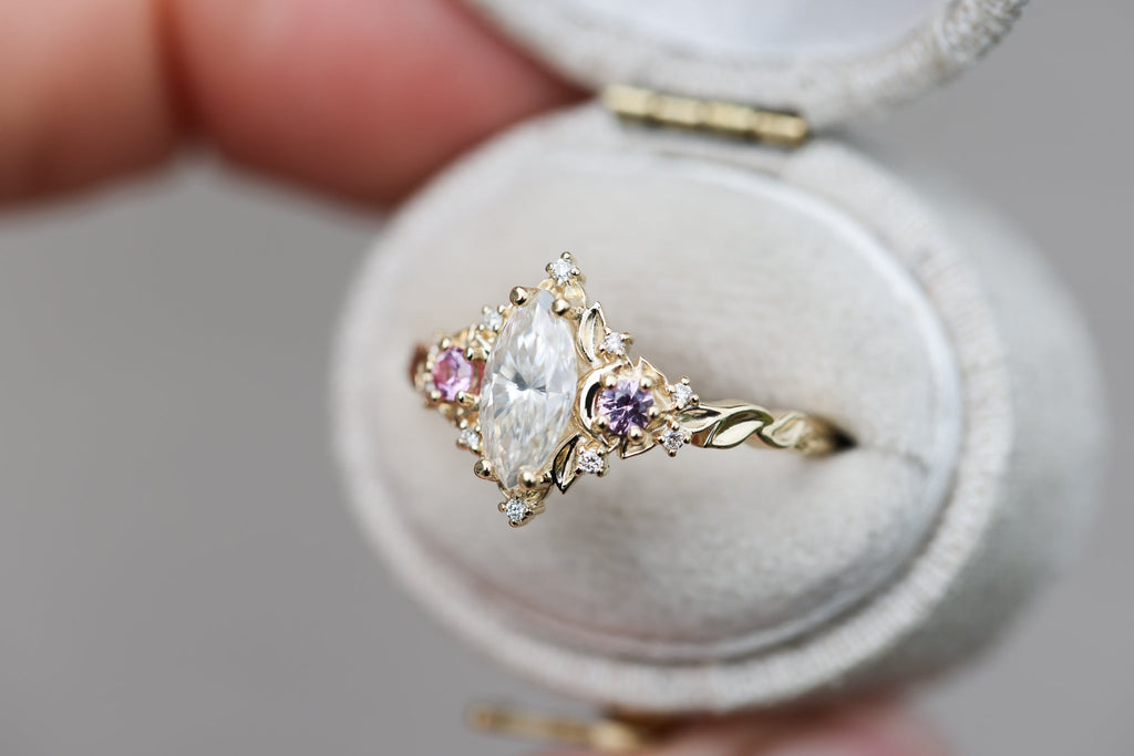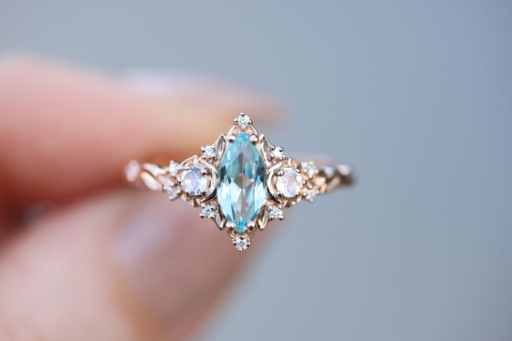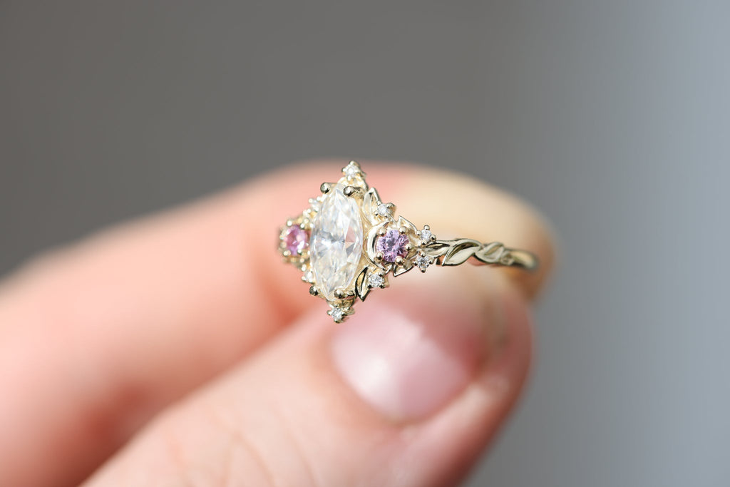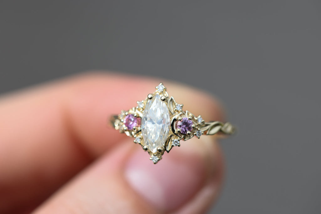 Customize your own Briar Moon Three Stone with marquise center and round sides