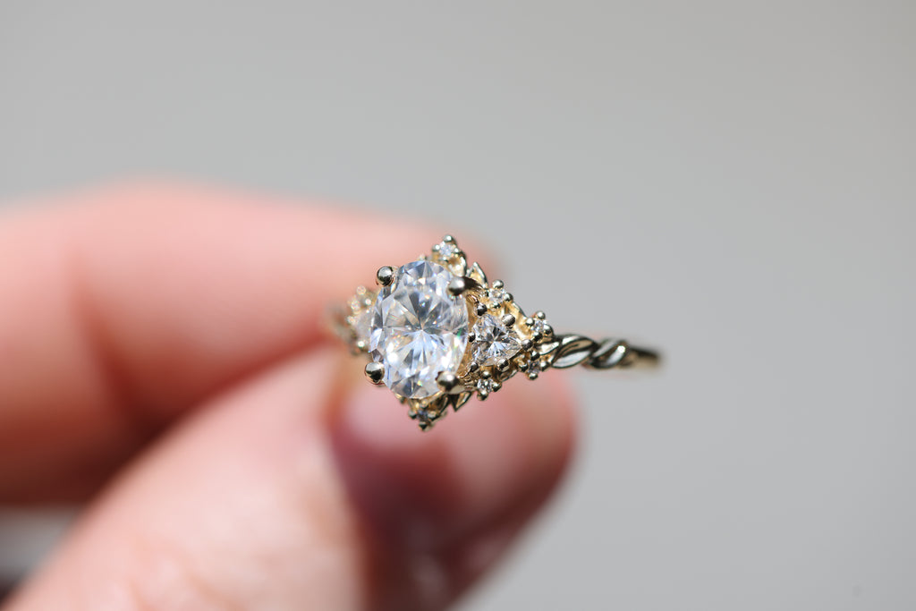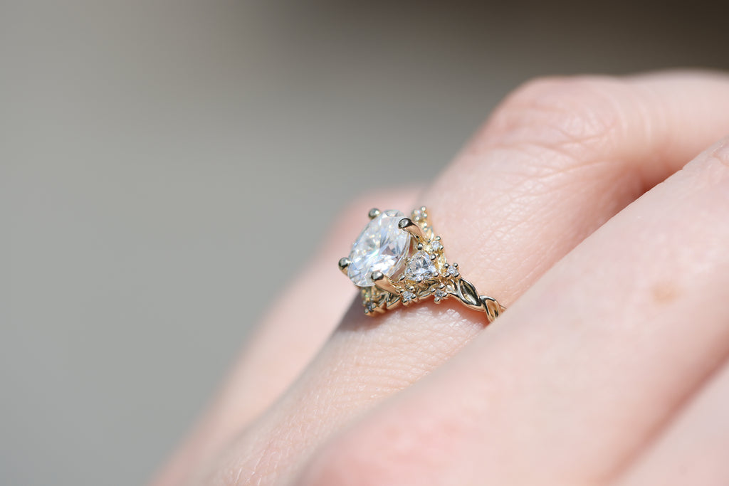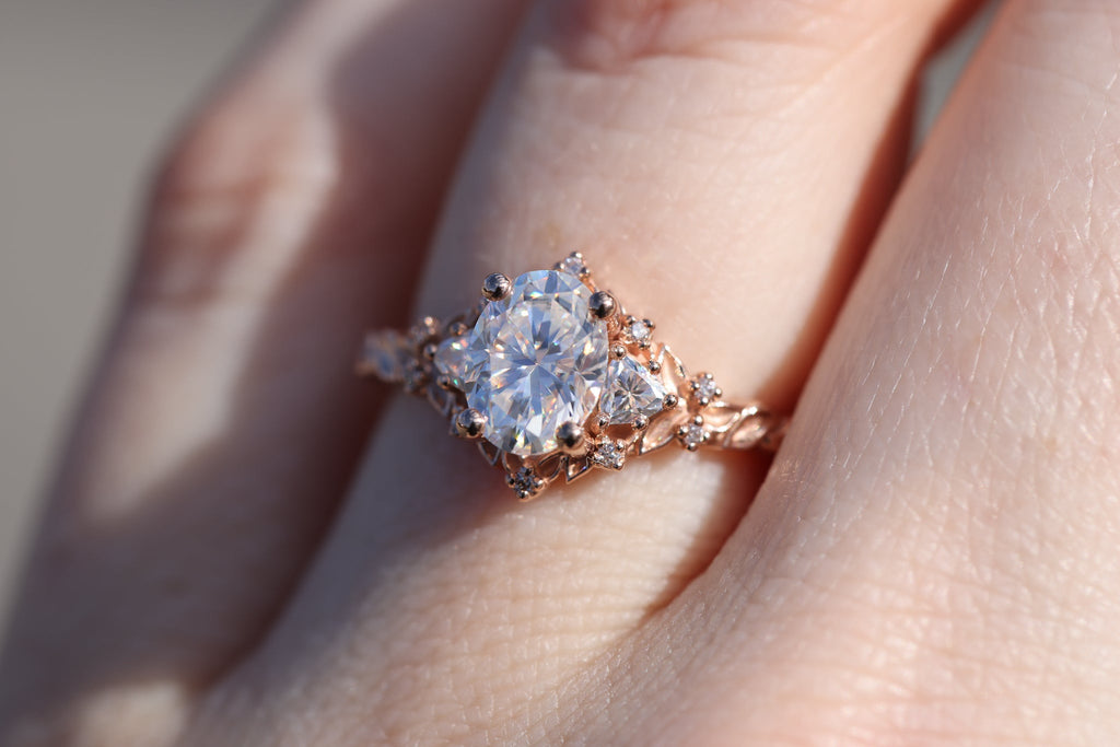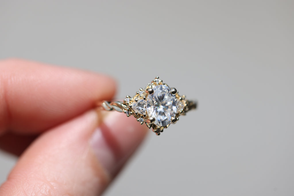 Customize your own Briar Rose Three Stone with 8x6mm oval center