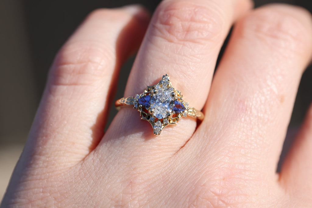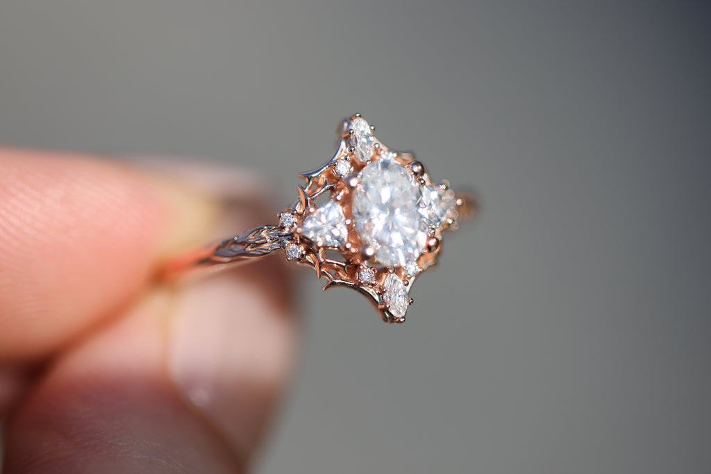 Customize your own Olenna "Queen of Thorns" with 7x5mm oval center stone
