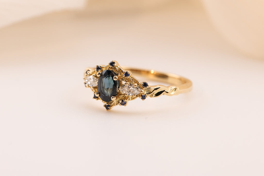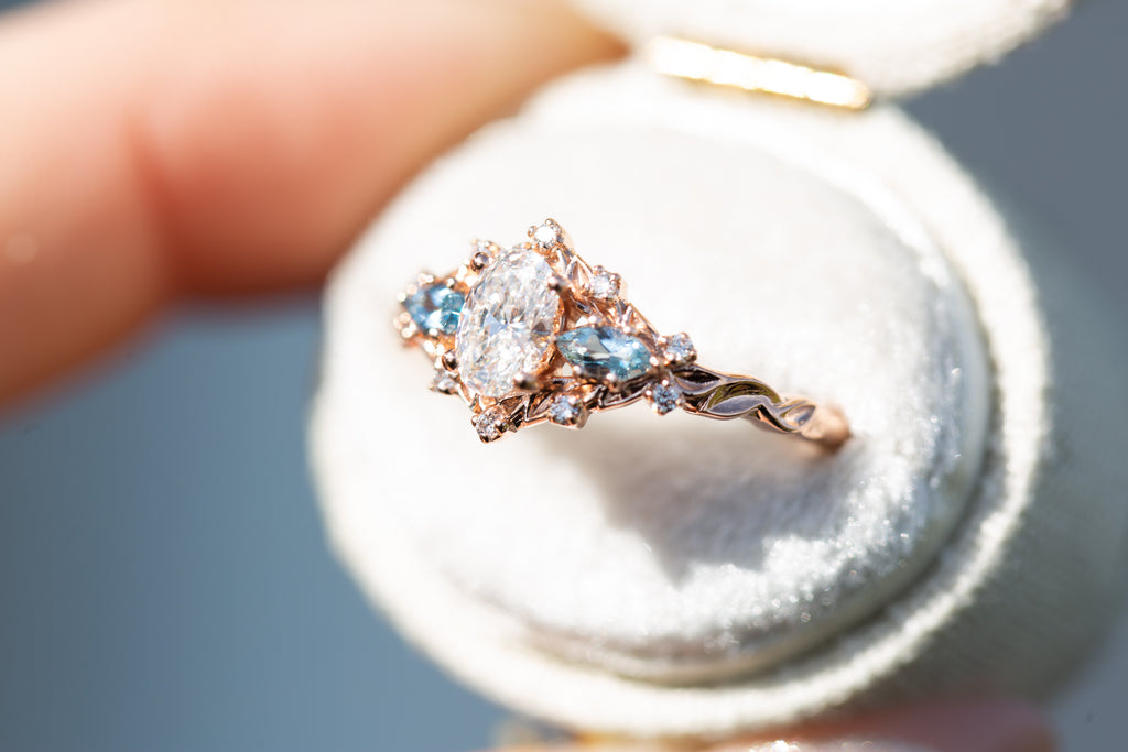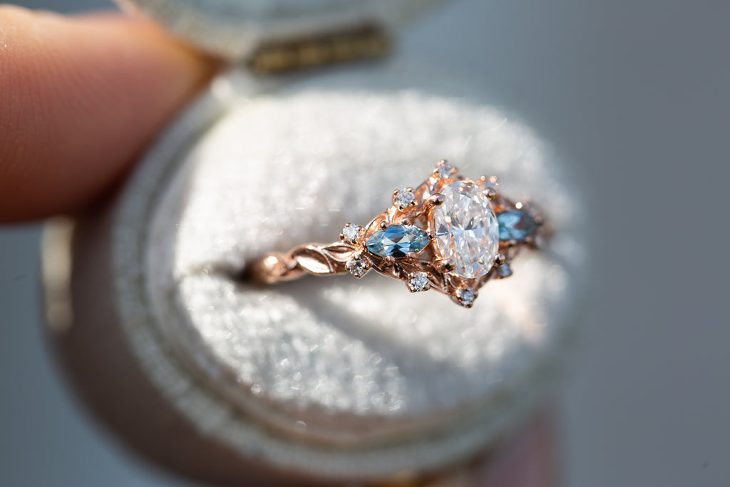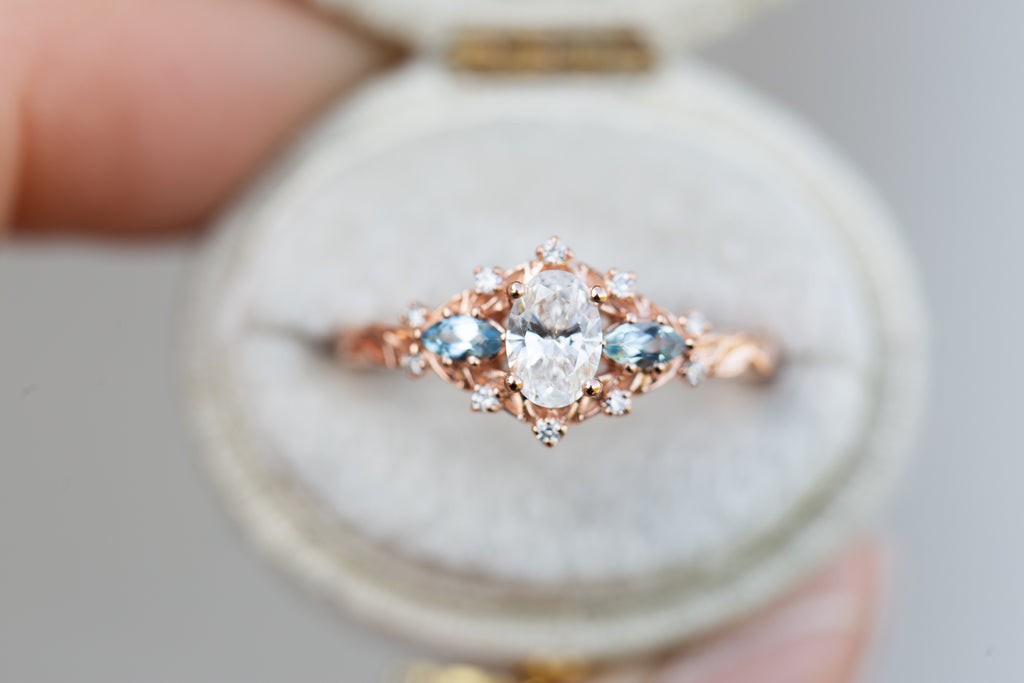 Customize your own oval Briar Rose Three Stone with marquise side stones