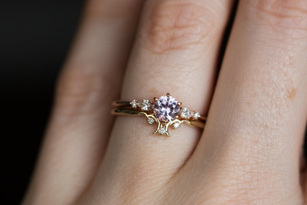- This ring is more delicate and fits best with a 5-6mm center stone! It can fit with slightly bigger stones but there will be more gap between the rings.
