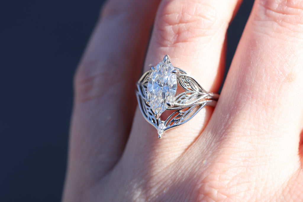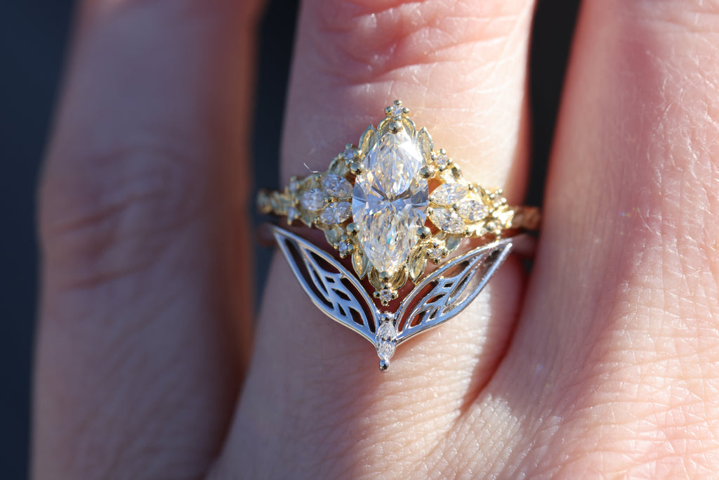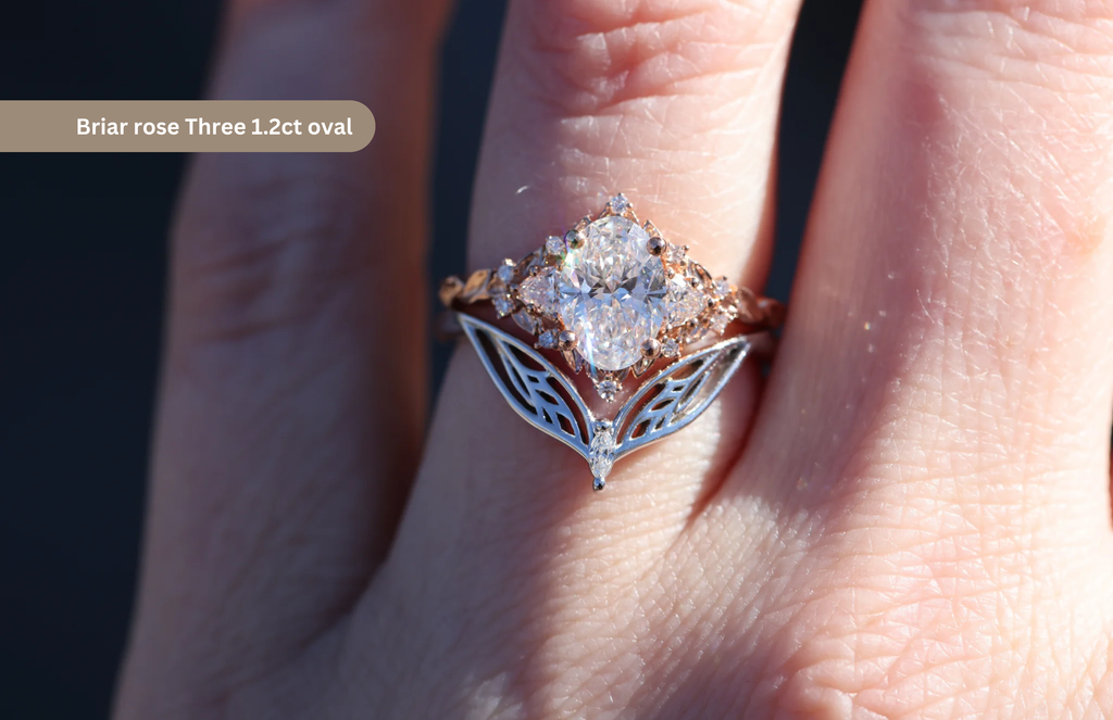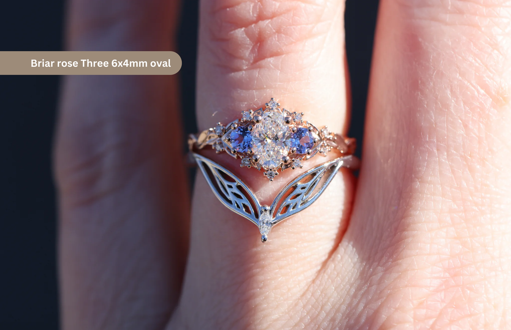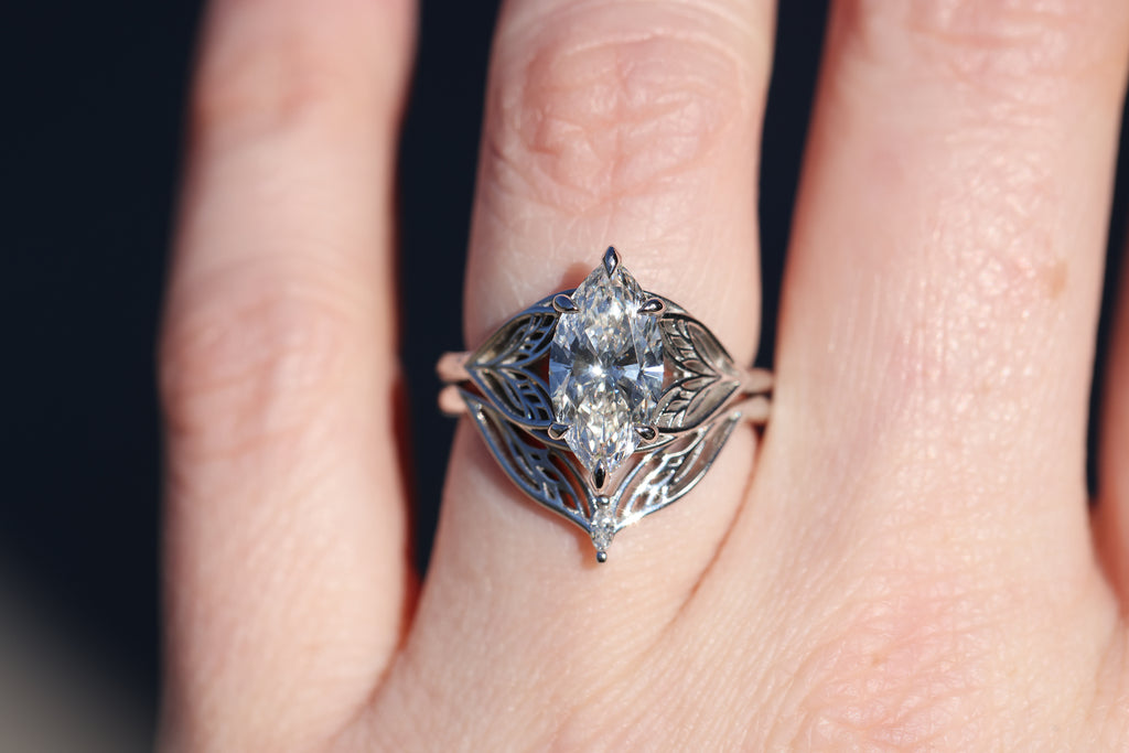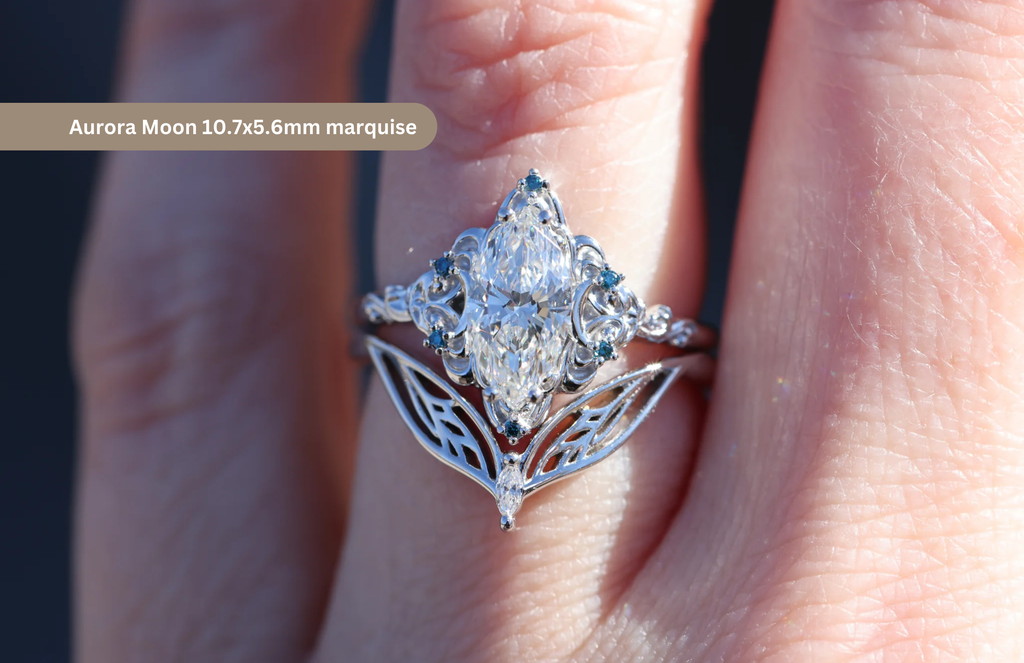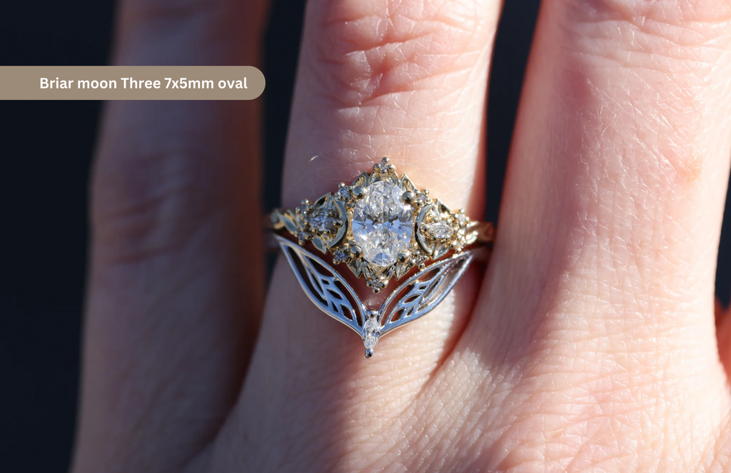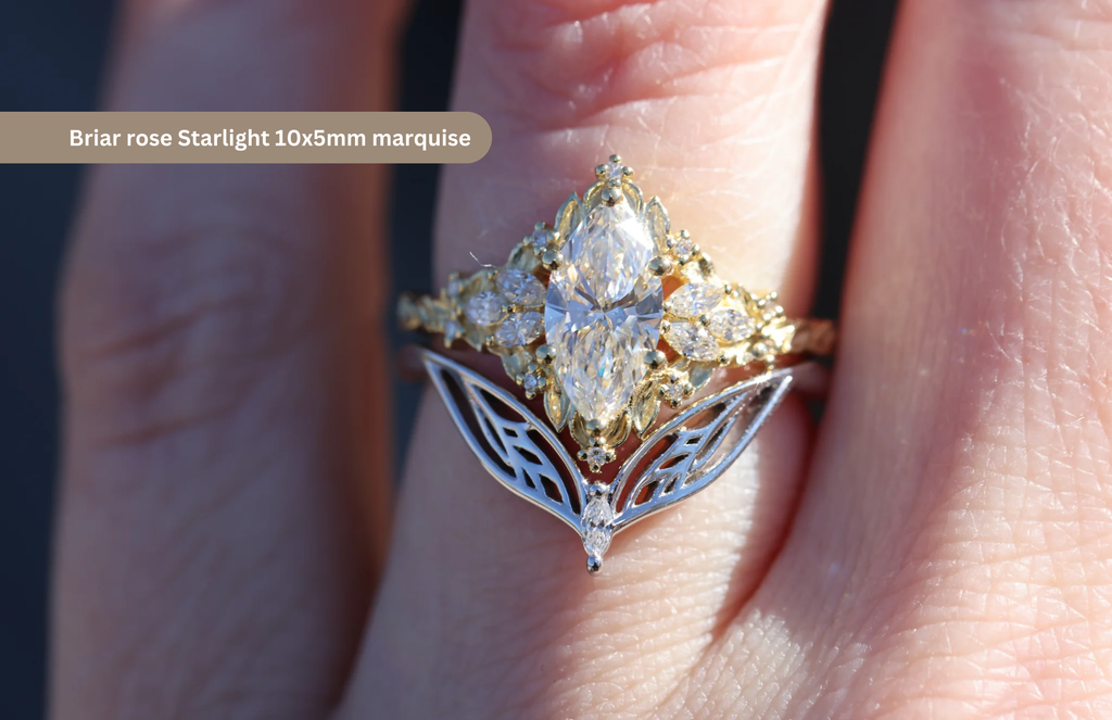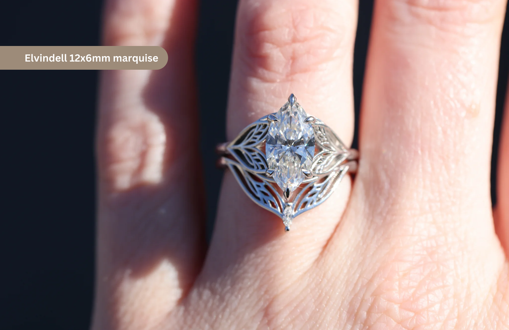 - This beautiful band pairs well with my larger center marquise Elvindells (for example 1.5+ marquise center). This also pairs nicely with around a 10x5mm-11x5.5mm marquise briar rose ring or similar. It also works with around an 8x6mm oval center briar rose.