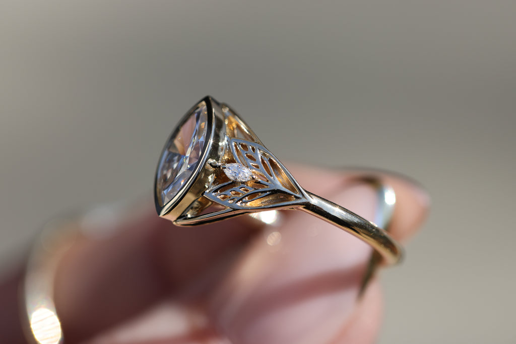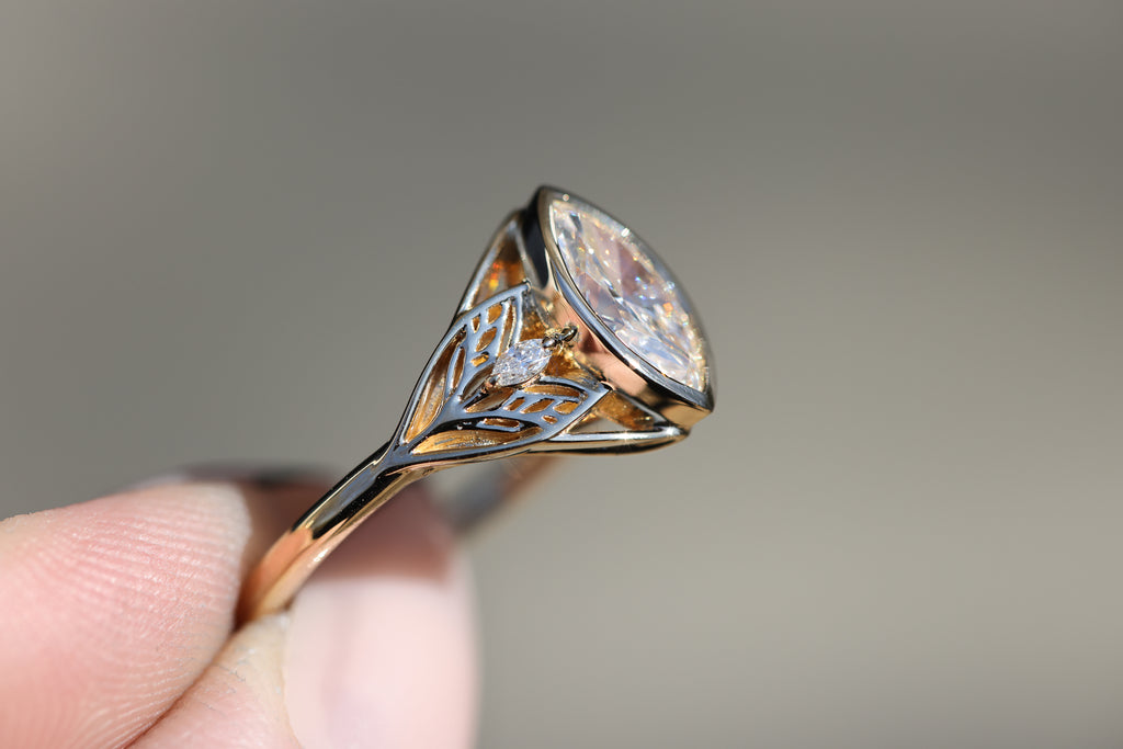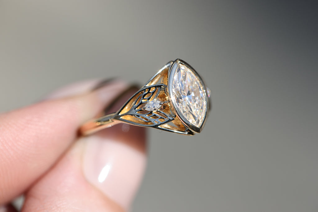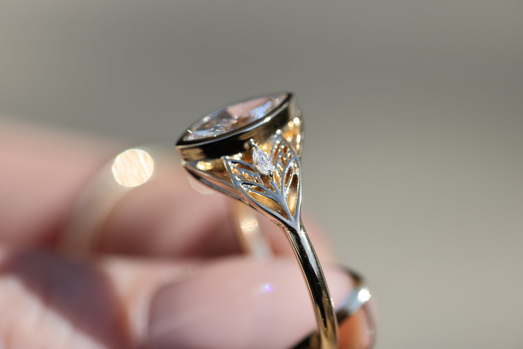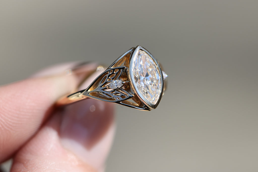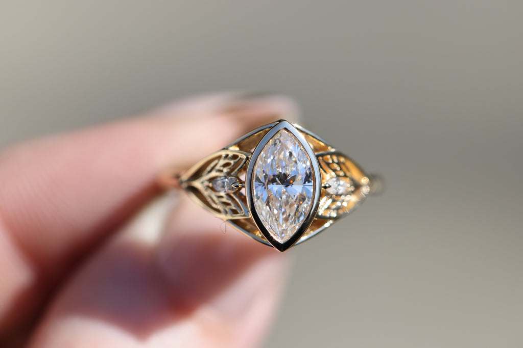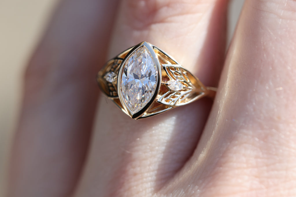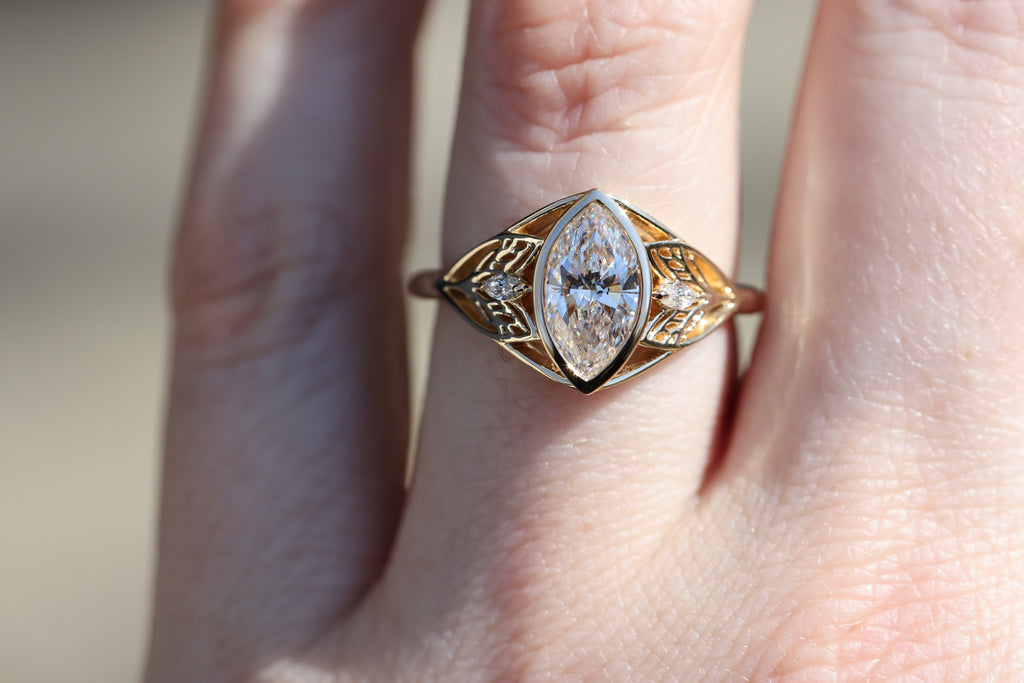 Elvindell Three Stone with Bezel and 1.2ct Marquise Diamond