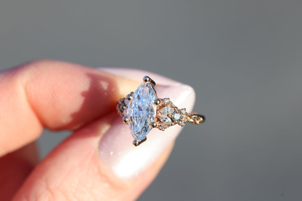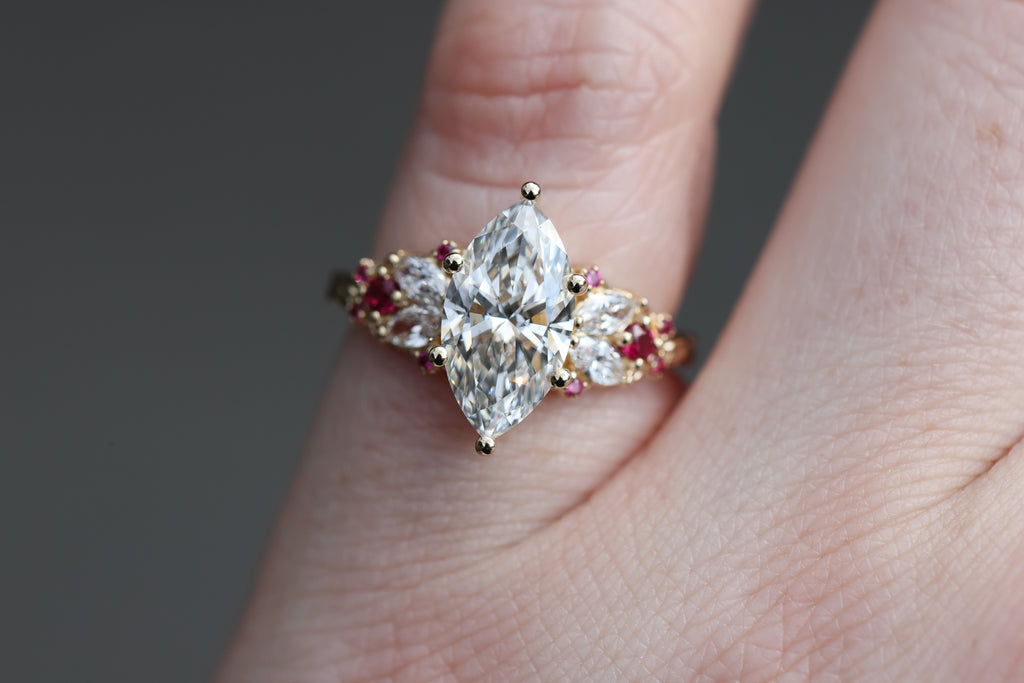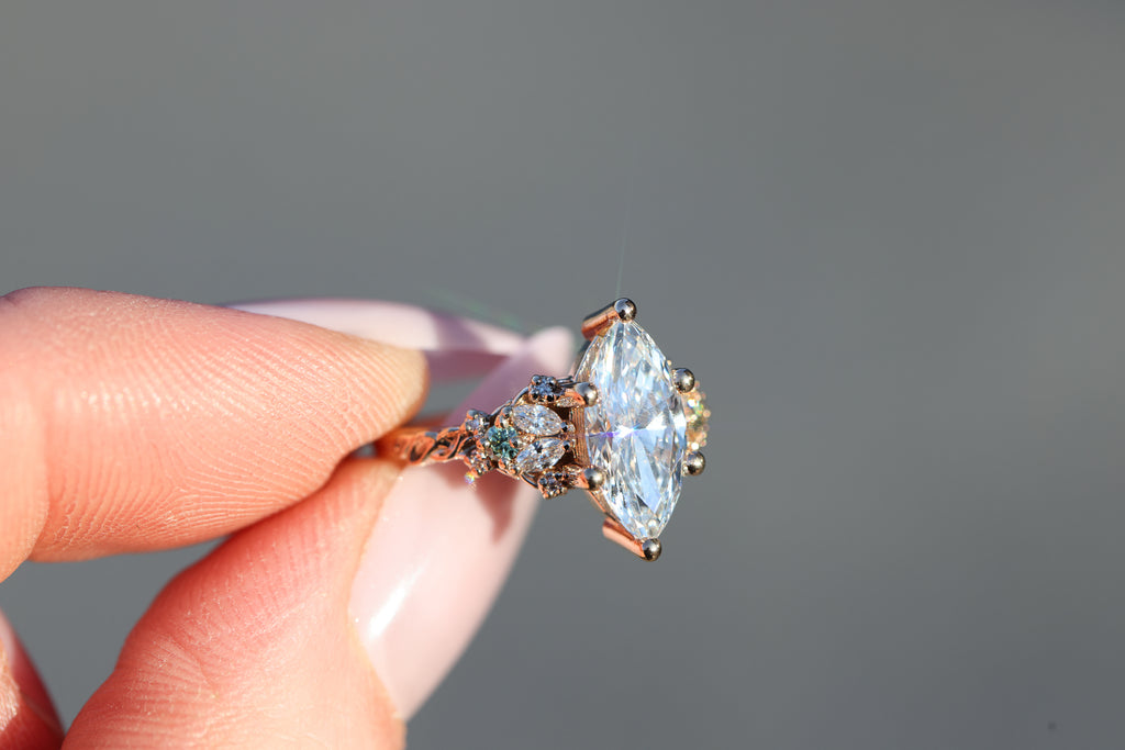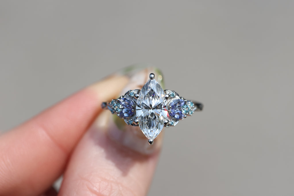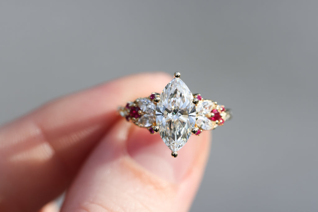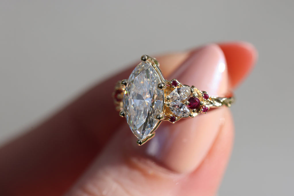 - Four, marquise side stones (size ranges slightly from 3x1.5mm - 4x2mm)