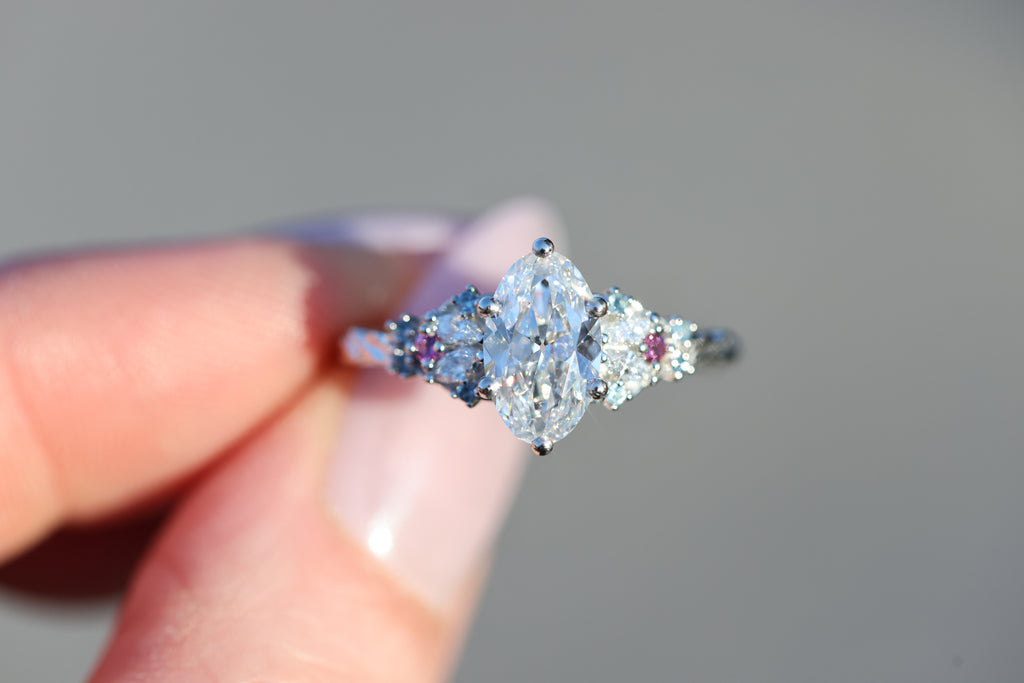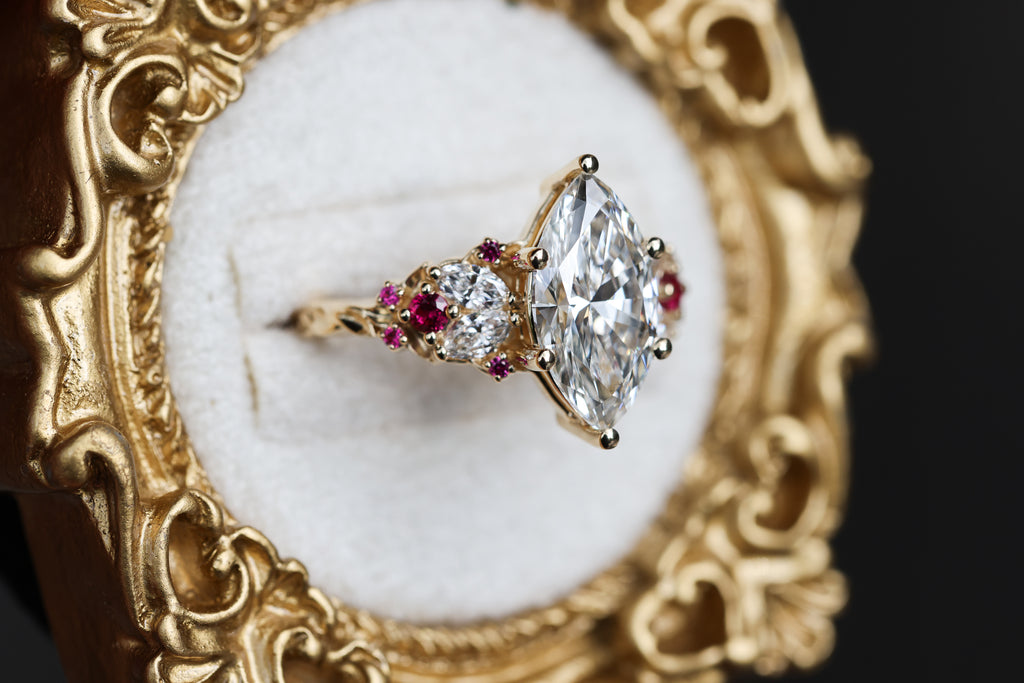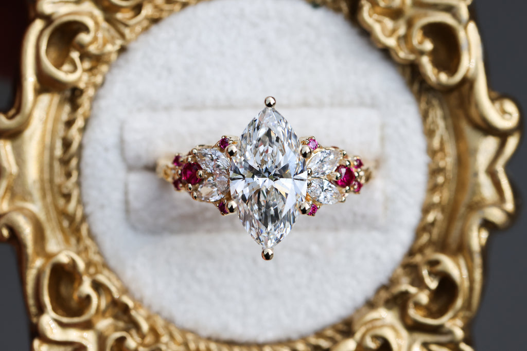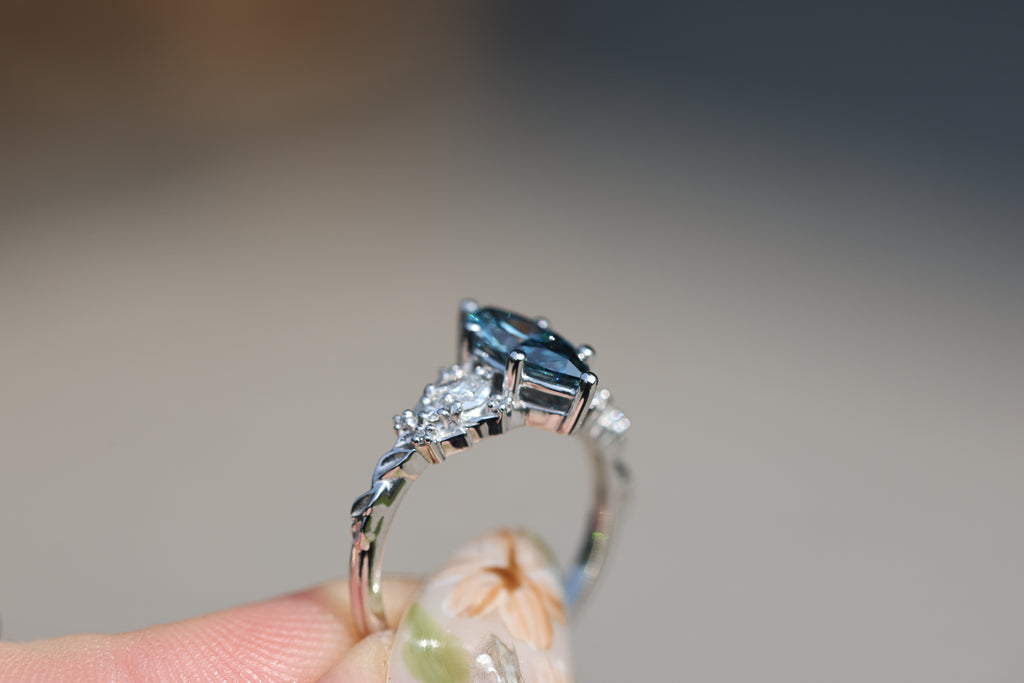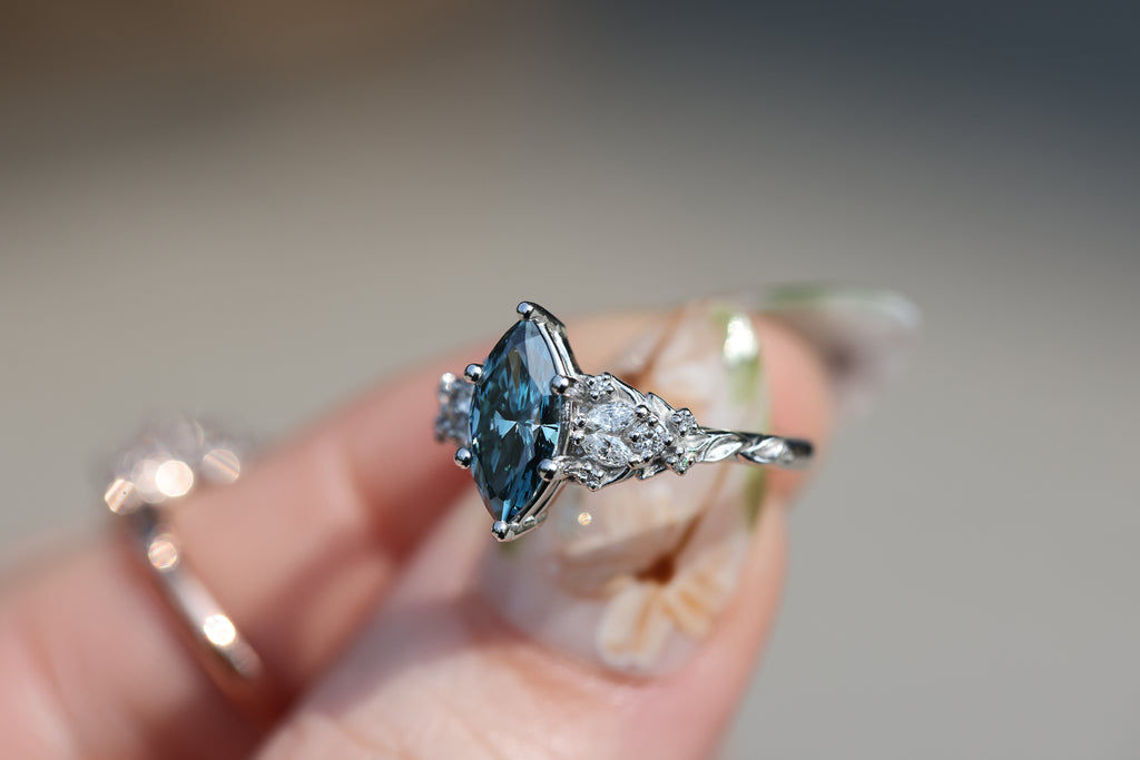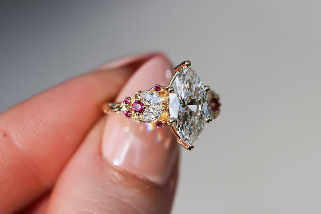 - Four, marquise side stones (size ranges slightly from 3x1.5mm - 4x2mm)