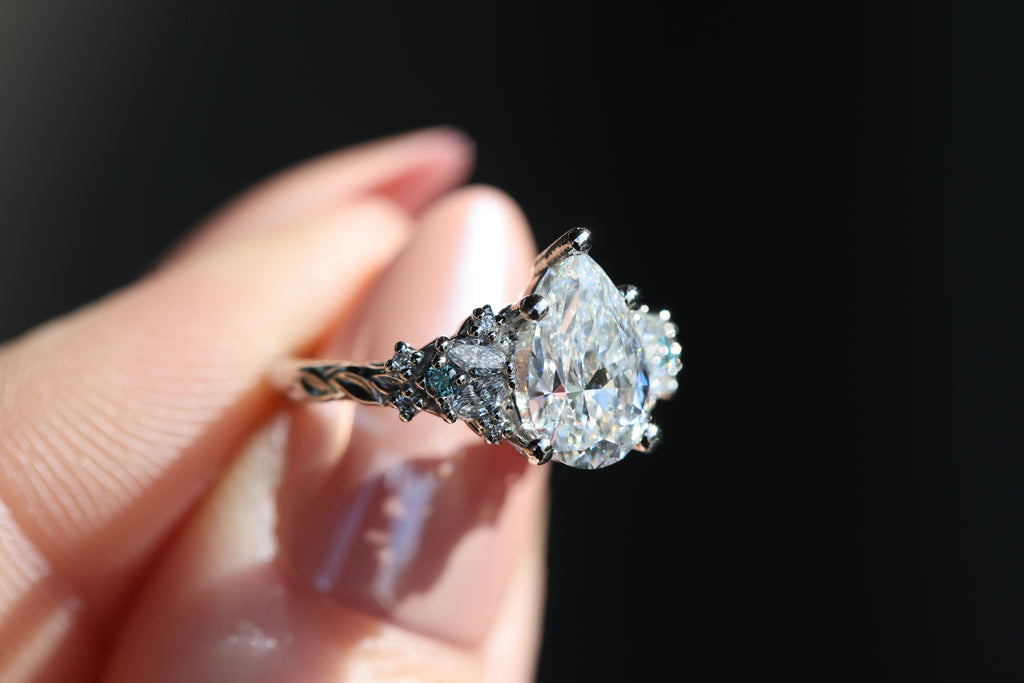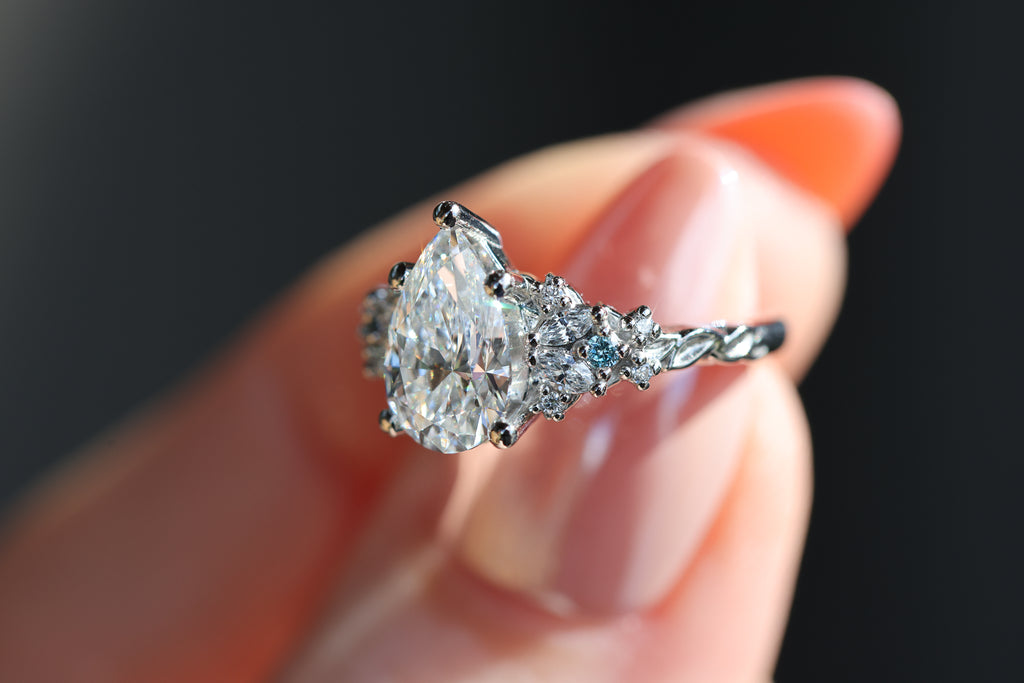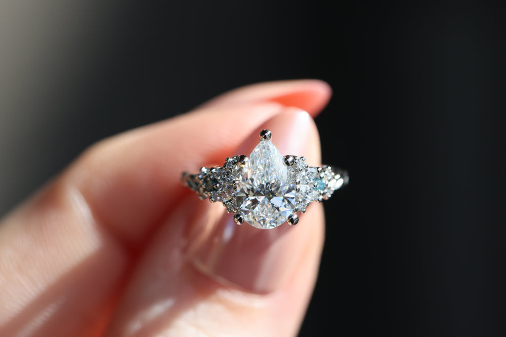 - Center stone will have 6 prongs on most stones; pear will have 4-5