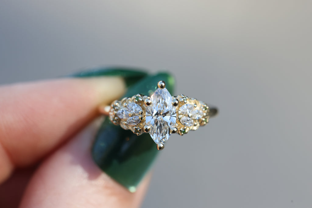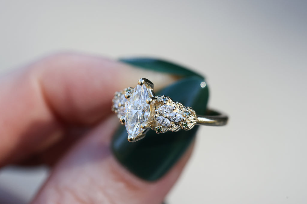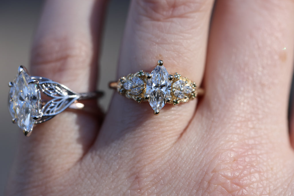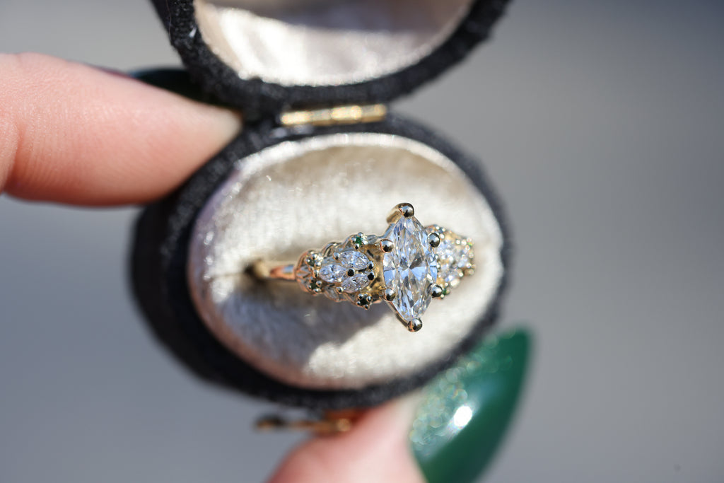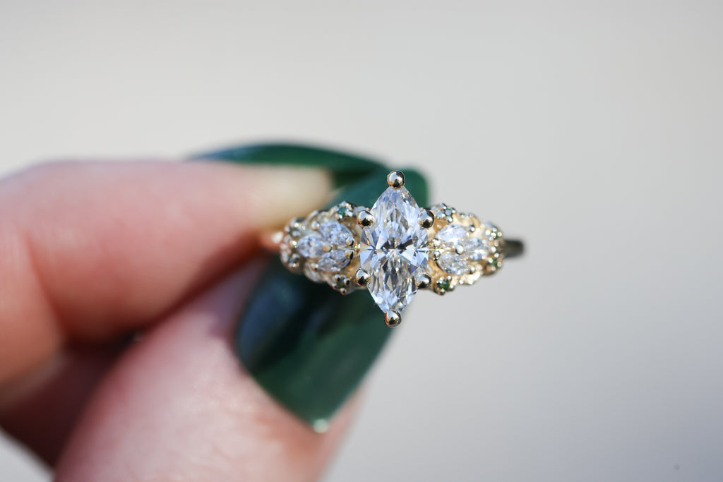 - Six, marquise side stones (size ranges slightly from 3x1.5mm - 4x2mm)