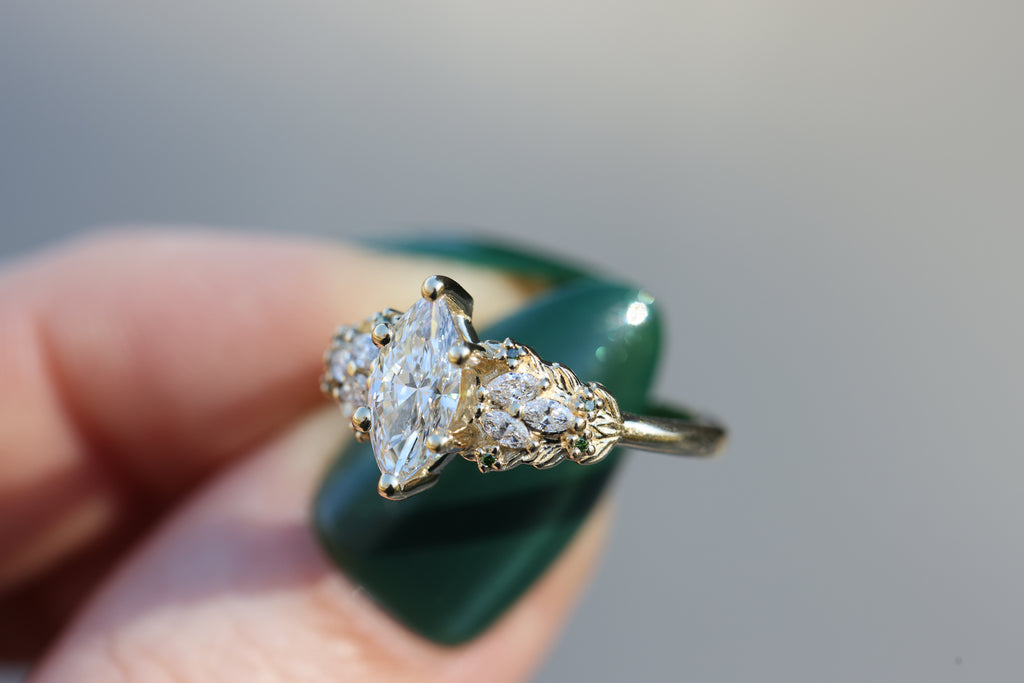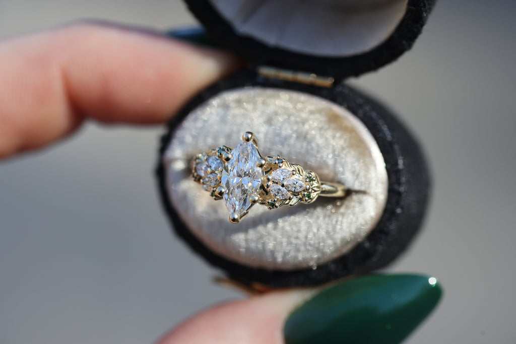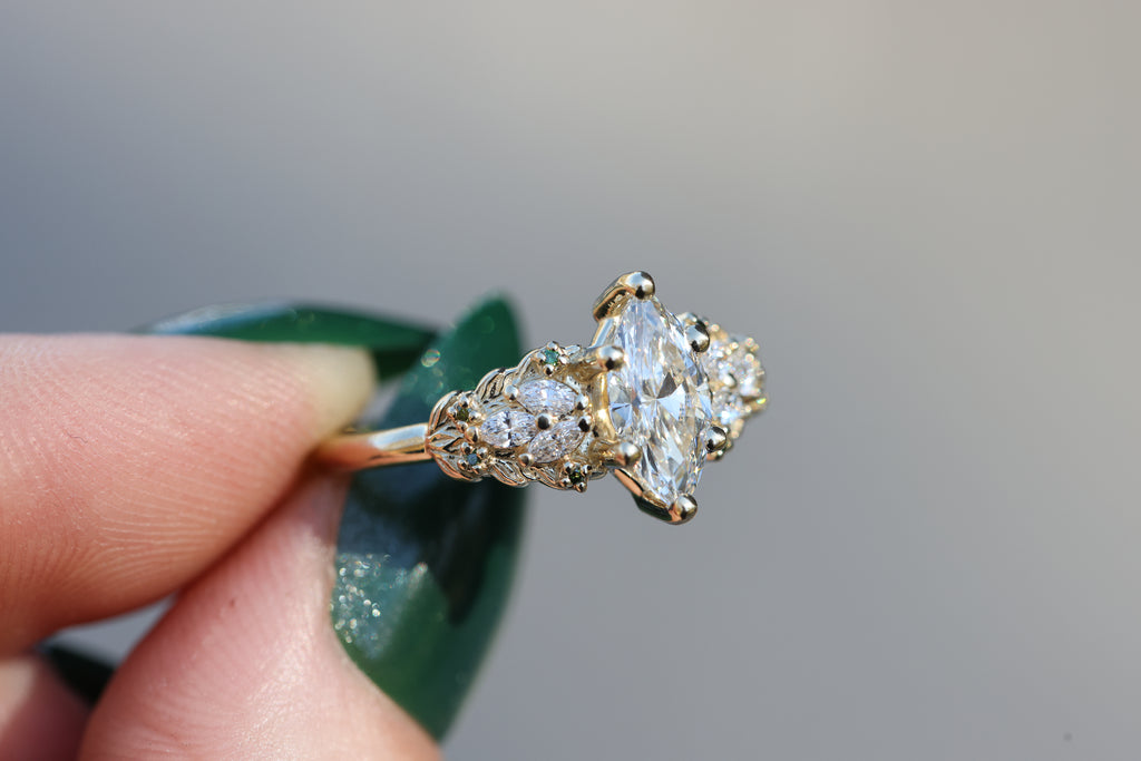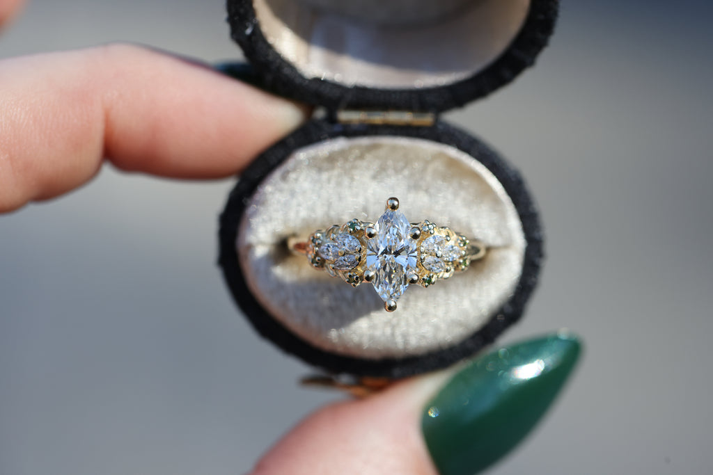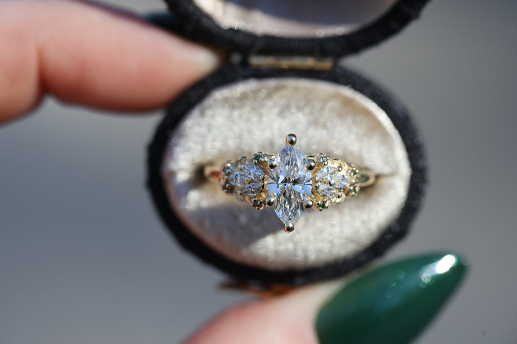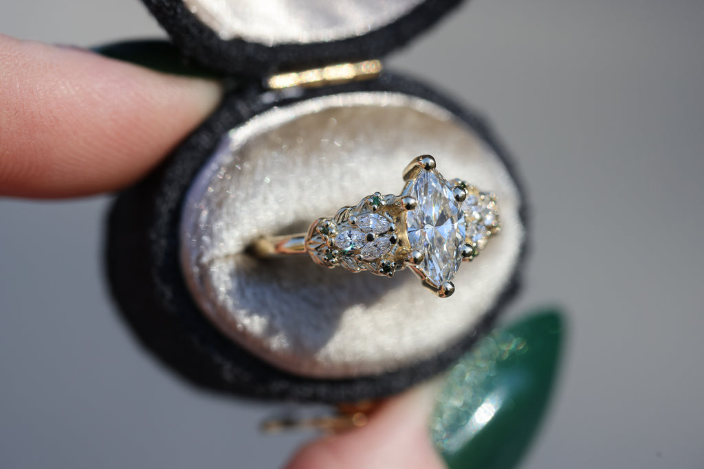 - Six, marquise side stones (size ranges slightly from 3x1.5mm - 4x2mm)