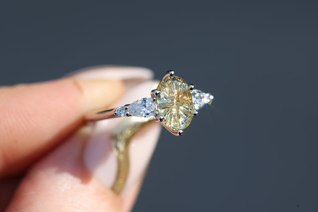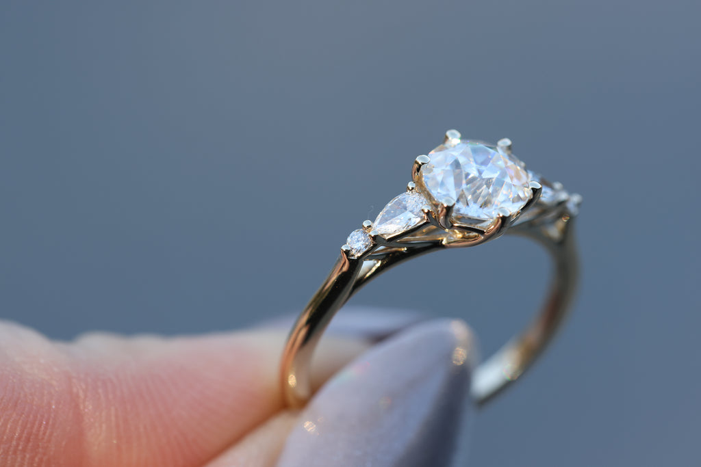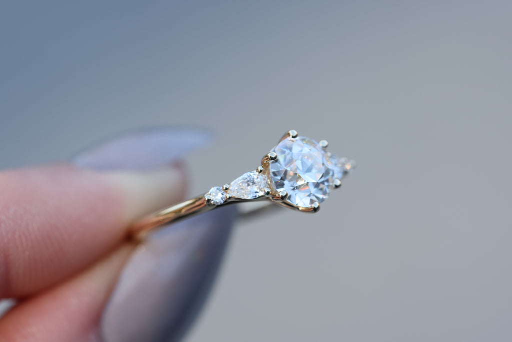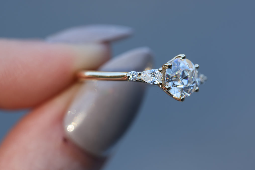 - Two, 4x3mm pear side stones (diamonds will be 4x2.5mm)