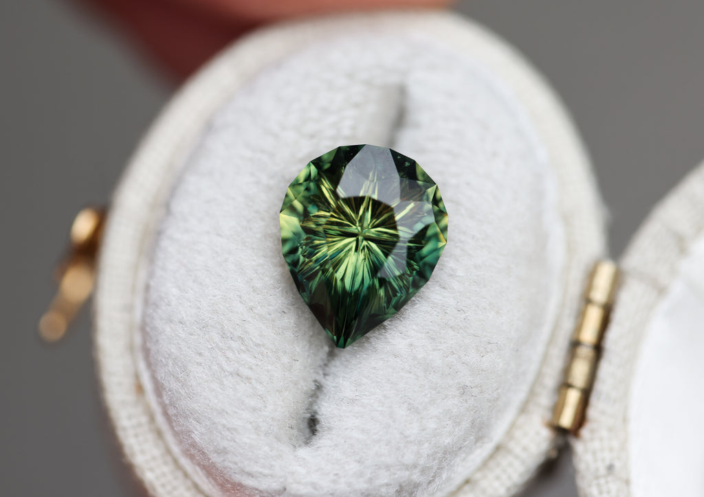 4.06ct pear parti sapphire, Starbrite cut by John Dyer