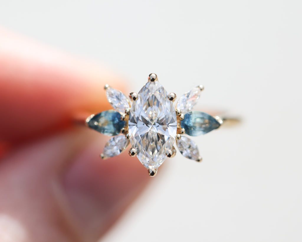 - Four 4x2mm marquise side stones