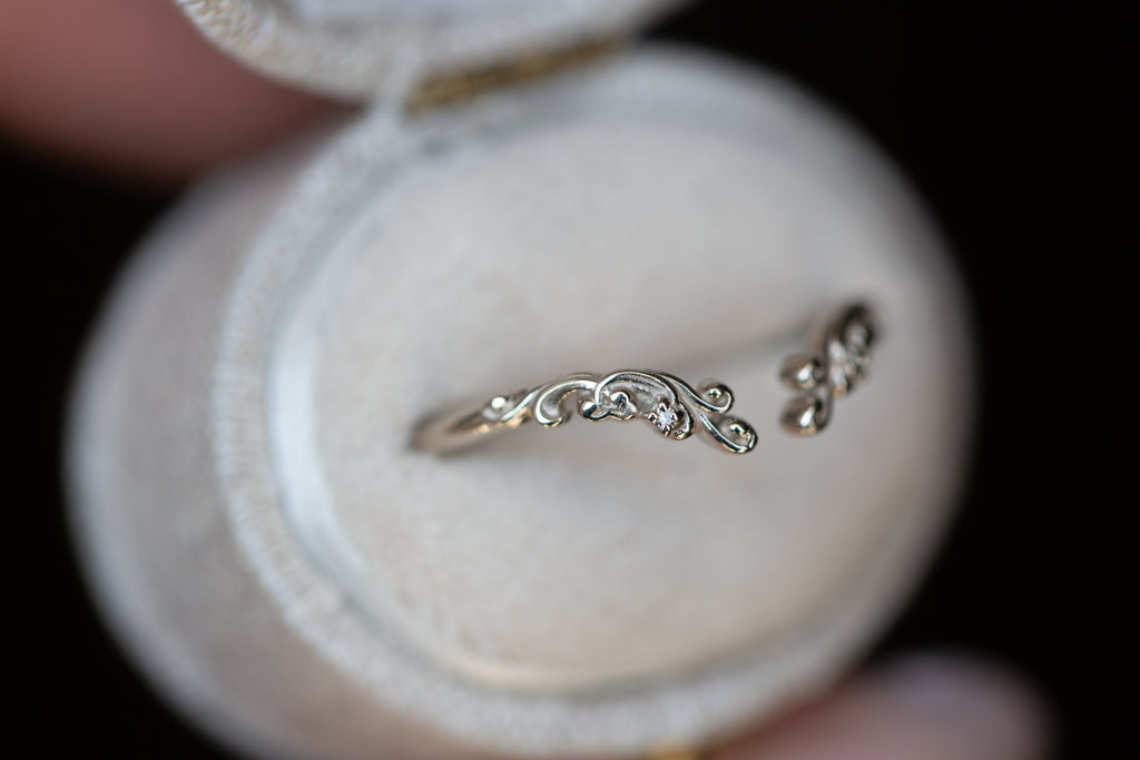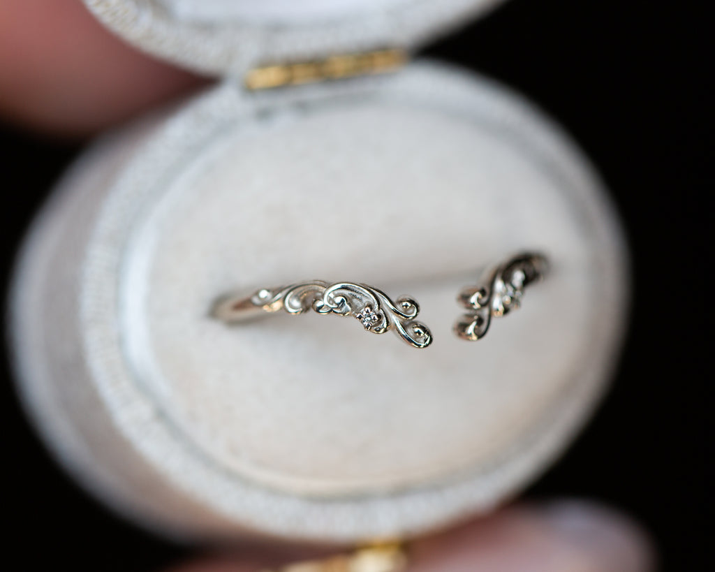 - Filigree is open in the front to allow a stone to sit slightly into it