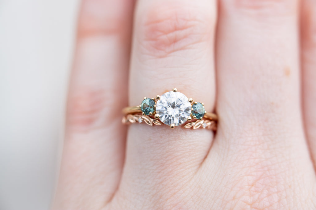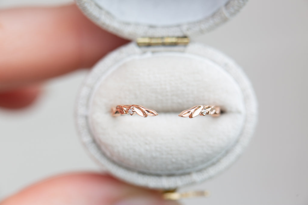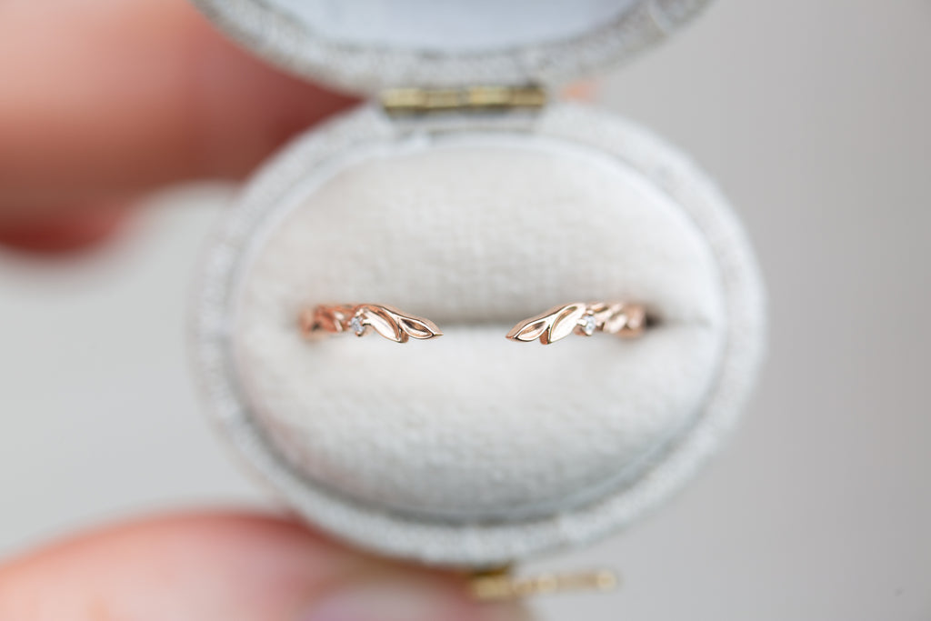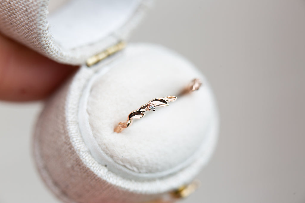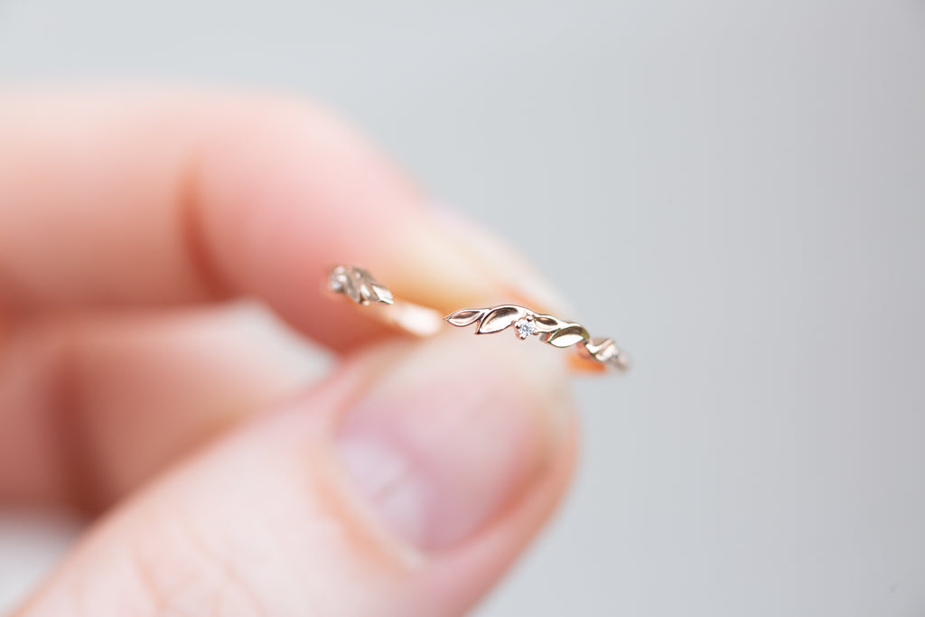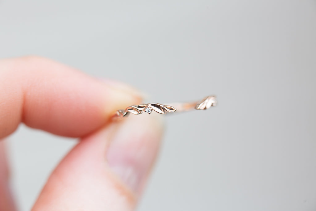 - Two, 1mm stones are place inside the curves of the leaves, giving this ring a little extra sparkle