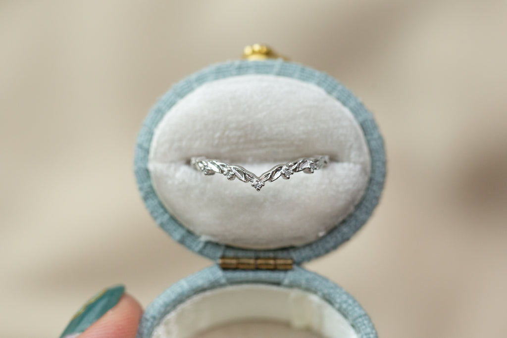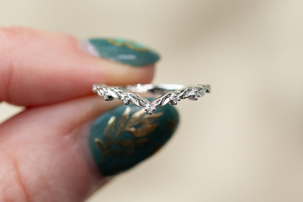 Ready to Ship - Size 4.5, 14k white gold Chevron Leafy Band