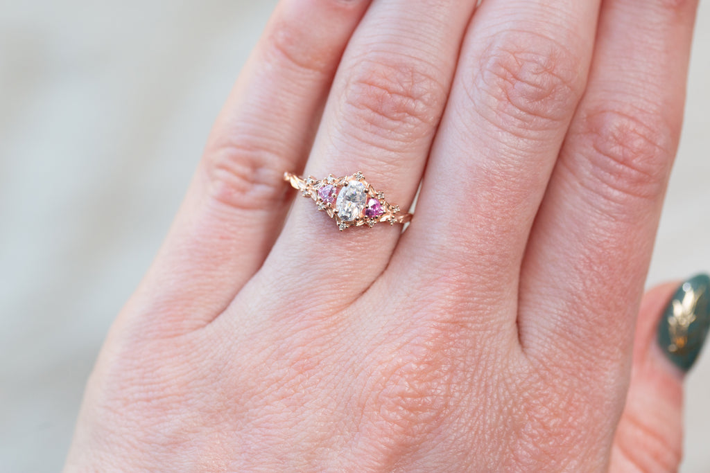 Ready to Ship - Size 7.5, 14k rose gold Briar Rose Three Stone