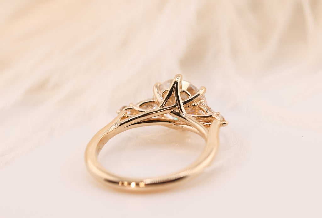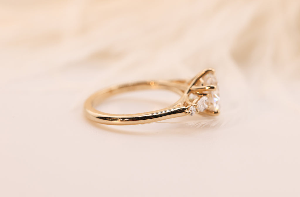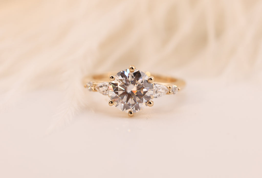 -Side/Accents: 4x2.5mm pear lab diamond, 1.7mm round lab diamond