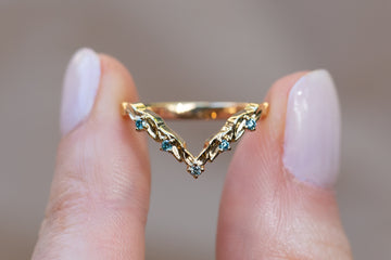 Ready to Ship - Size 5, 14k yellow gold Deep Chevron Leafy Wedding Band