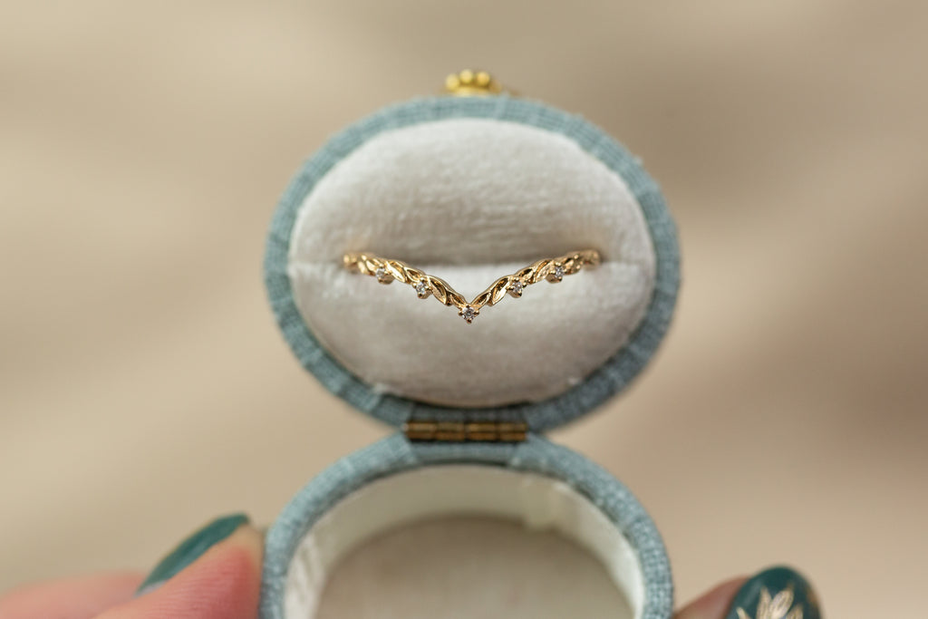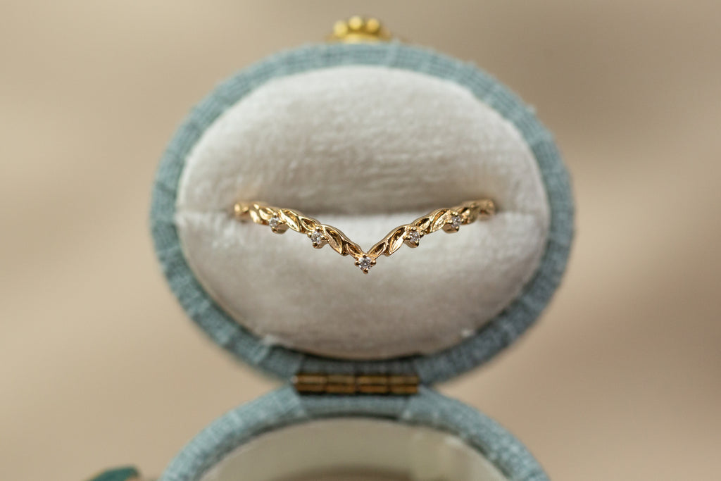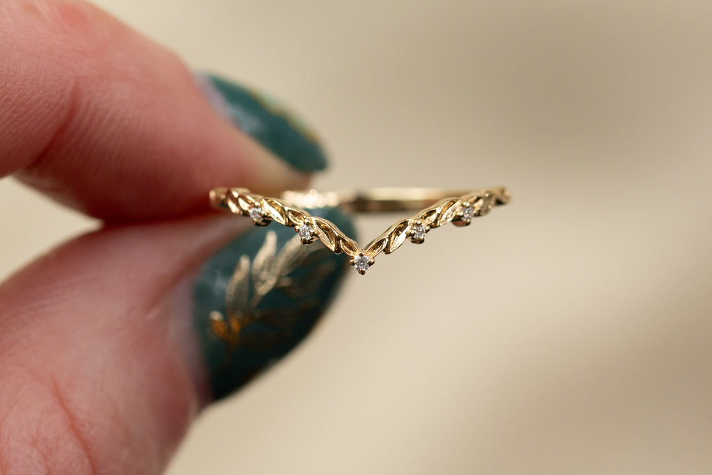 Ready to Ship - Size 7, 14k yellow Gold Chevron Leafy Wedding Band