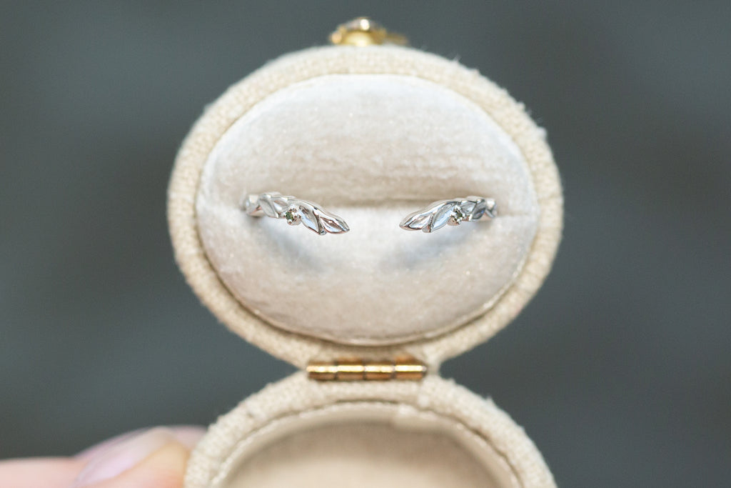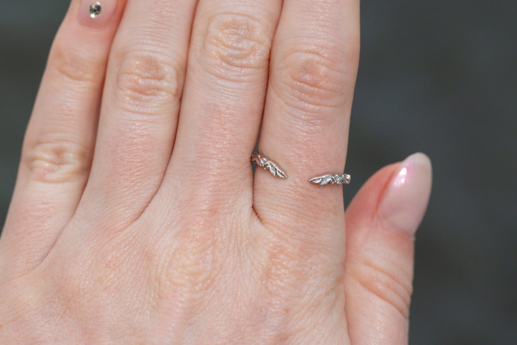READY TO SHIP - Size 7.75, 14k white gold Open Leaf Wedding Band