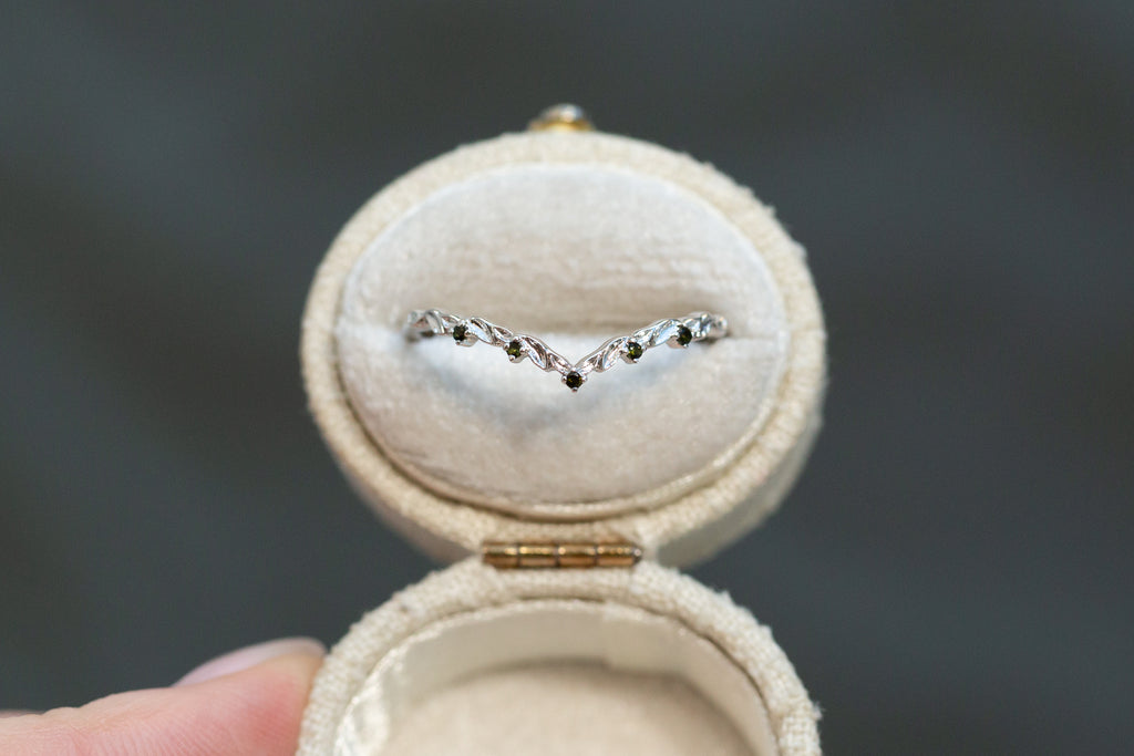 READY TO SHIP - Size 8, 18k white gold Chevron Leafy Wedding Band