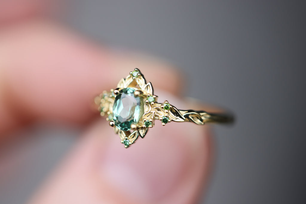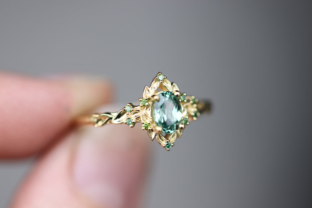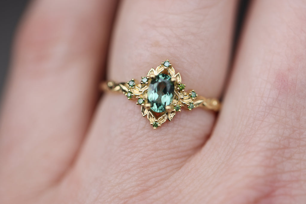 - 6x4mm oval lab green sapphire center
