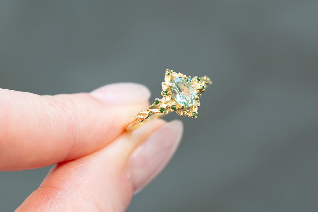 READY TO SHIP - Size 5.5, 18k yellow gold Briar Rose Halo