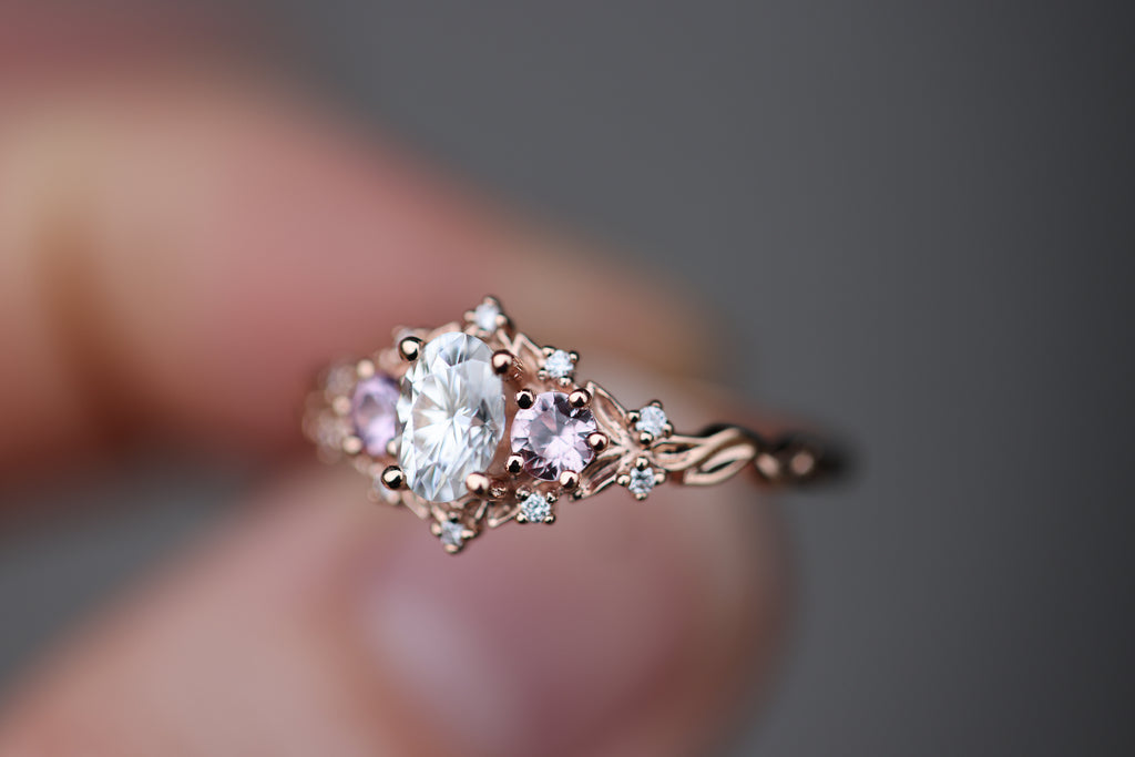 - 6x4mm oval moissanite center
