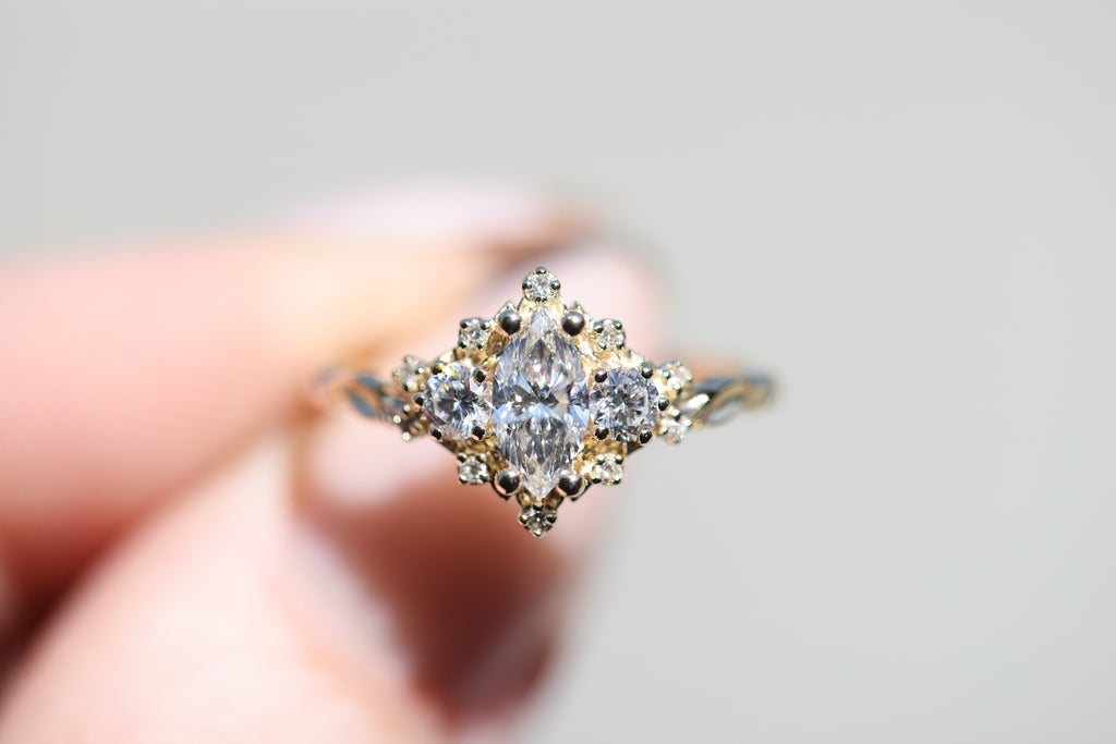Ready To Ship - Size 7 14k yellow gold Briar Rose Three Stone