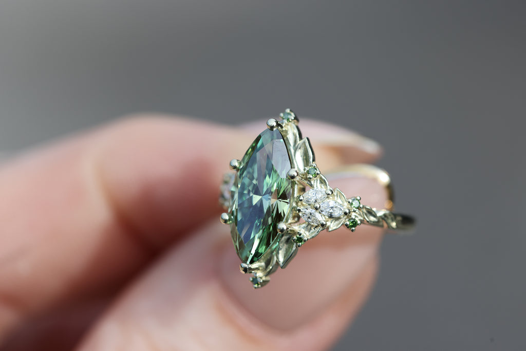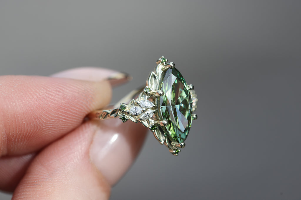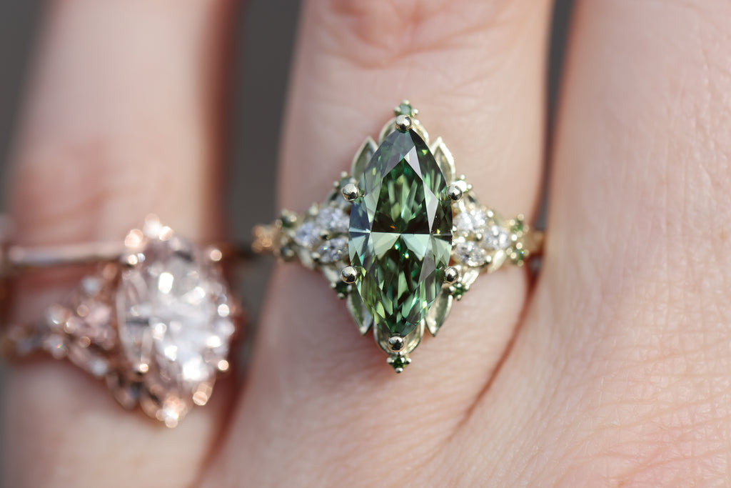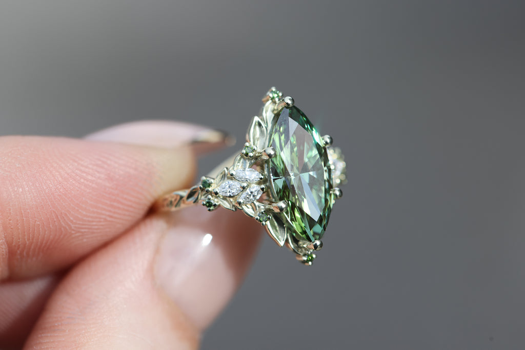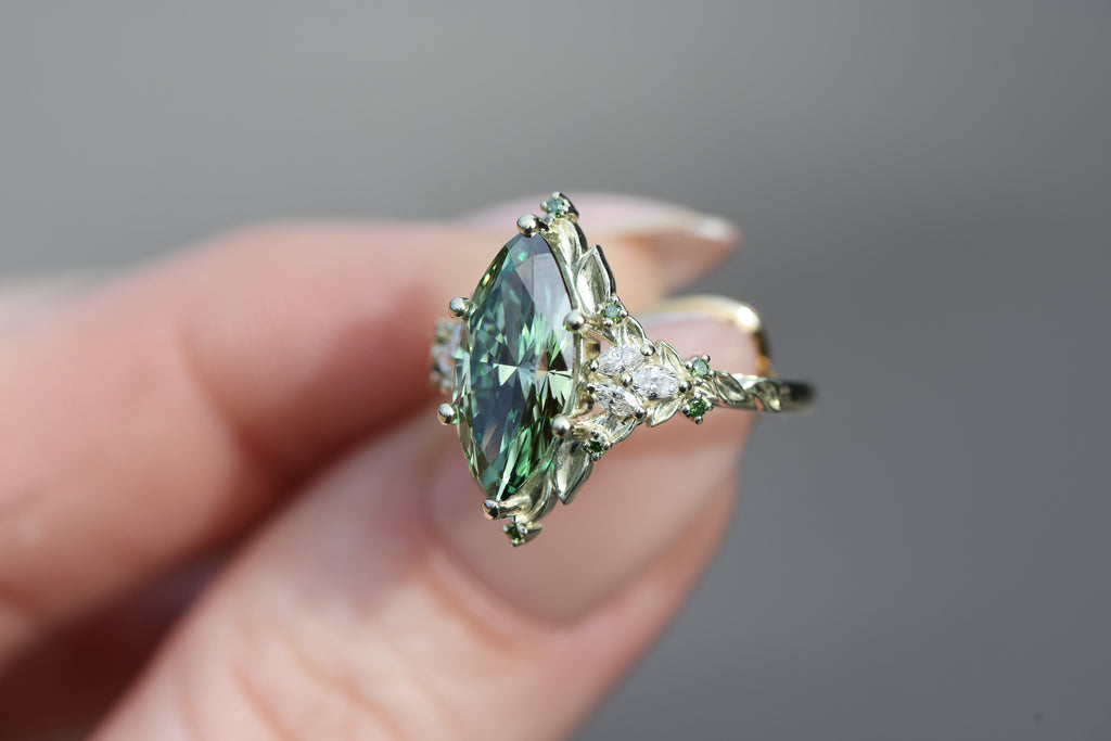 Ready to ship, Size 7 14k green gold Briar Starlight with lab green diamond