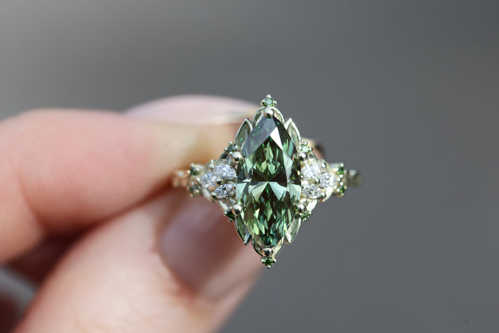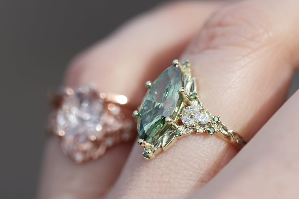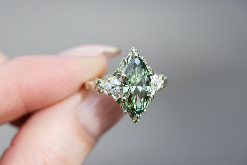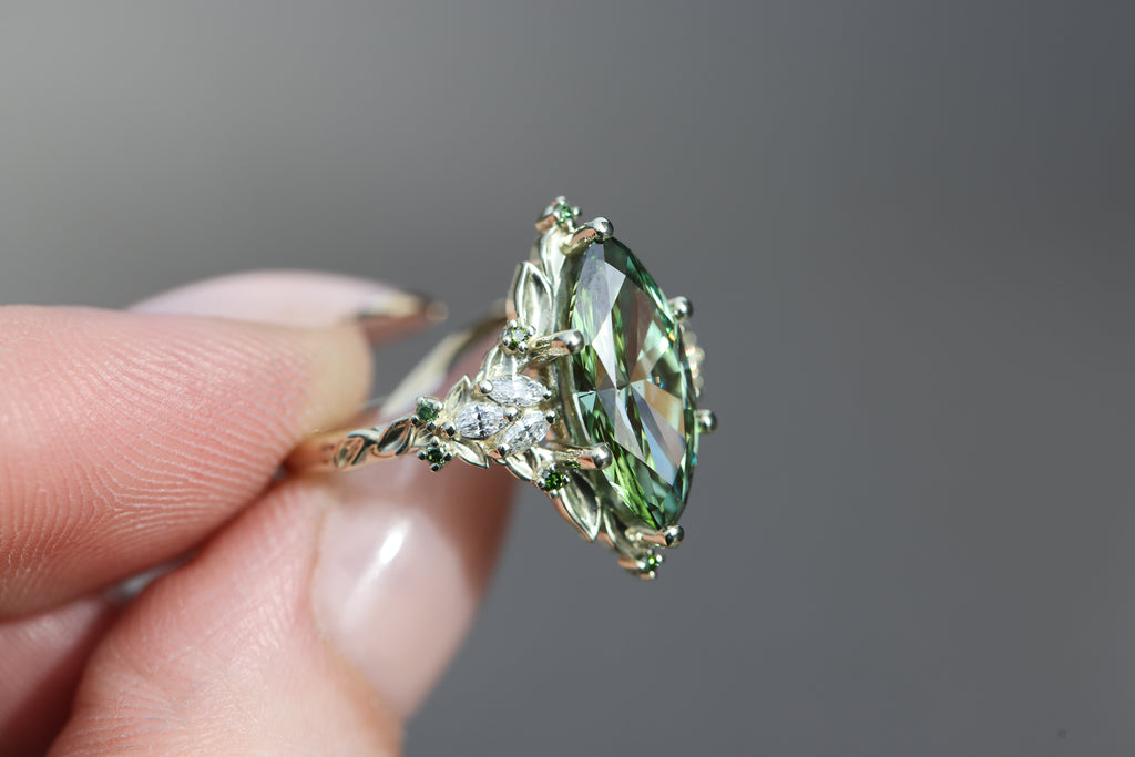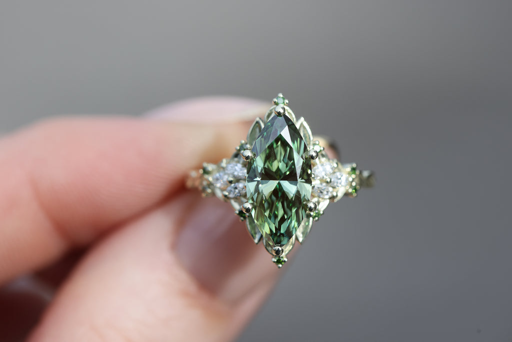 Ready to ship, Size 7 14k green gold Briar Starlight with lab green diamond