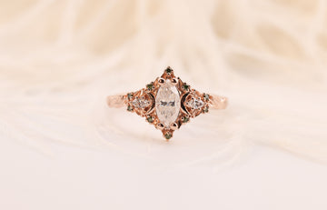 Ready to ship, Size 7 14k rose, Briar moon three stone