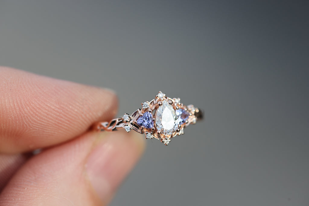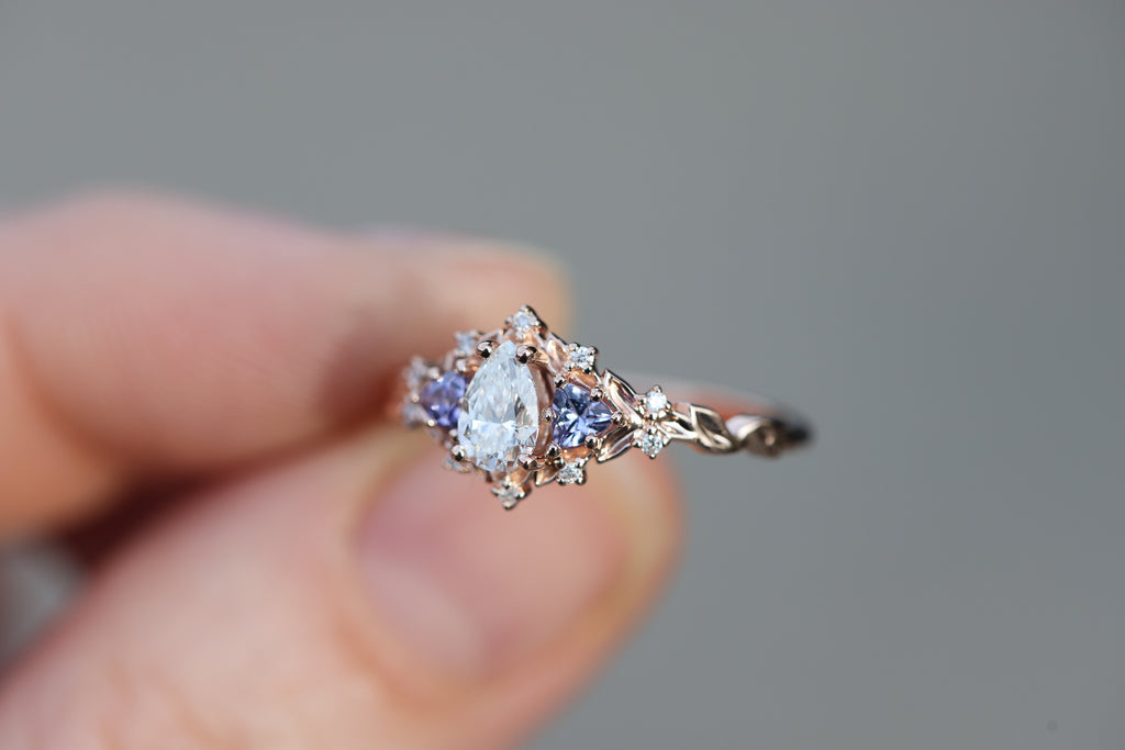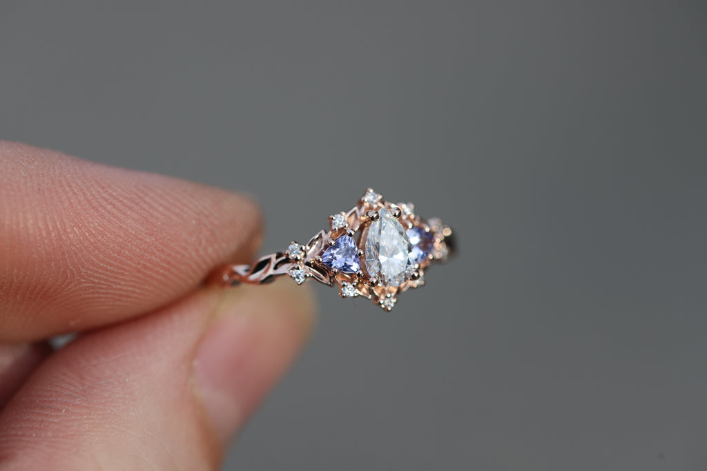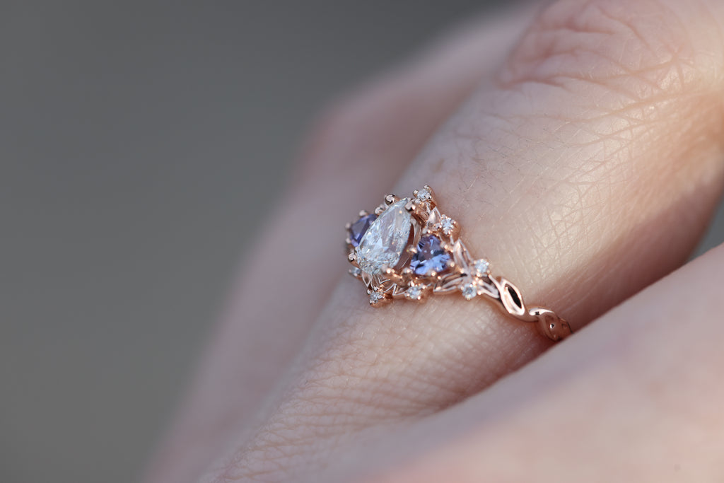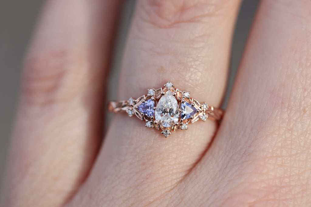 Ready to ship, size 7 14k rose Briar rose with lab diamond and tanzanite