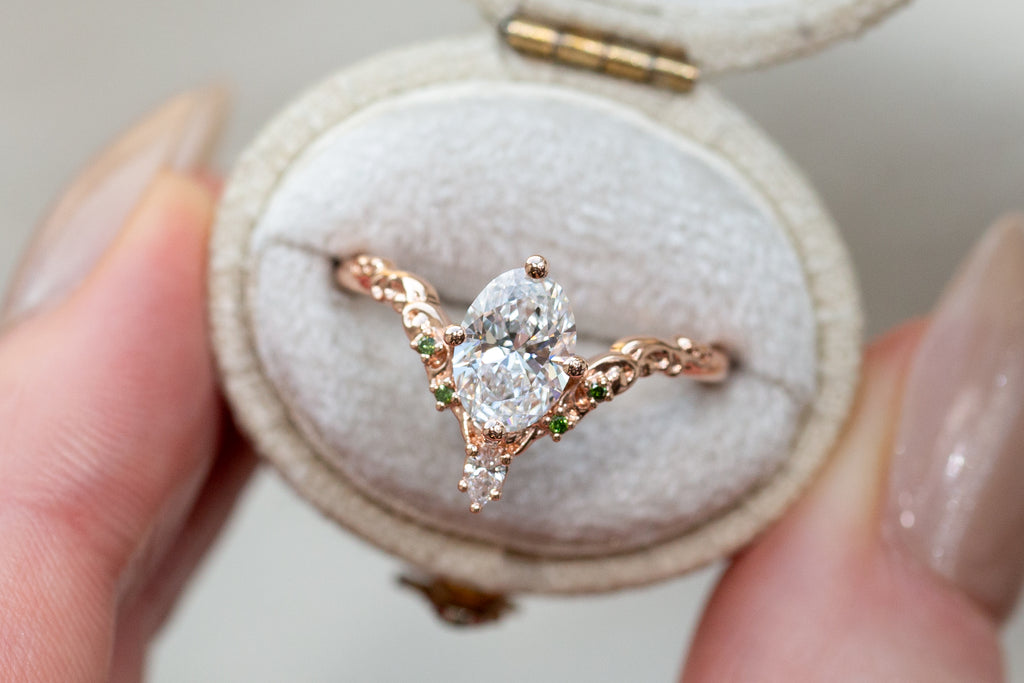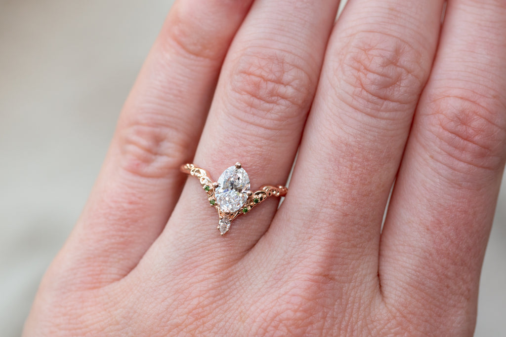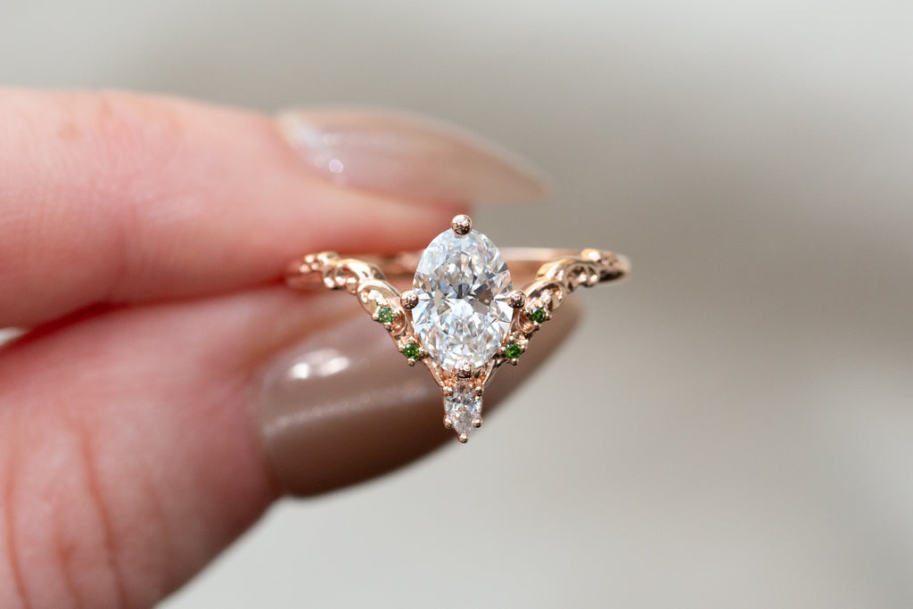 Ready to ship- Size 7, 14k rose gold Curved Filigree with oval lab diamond