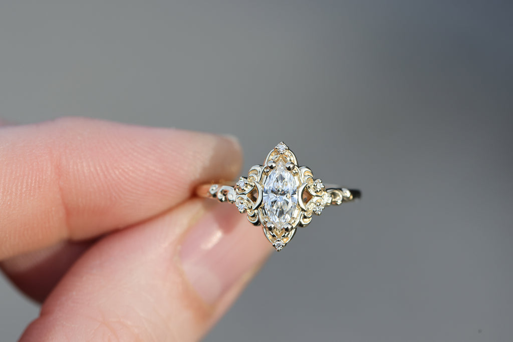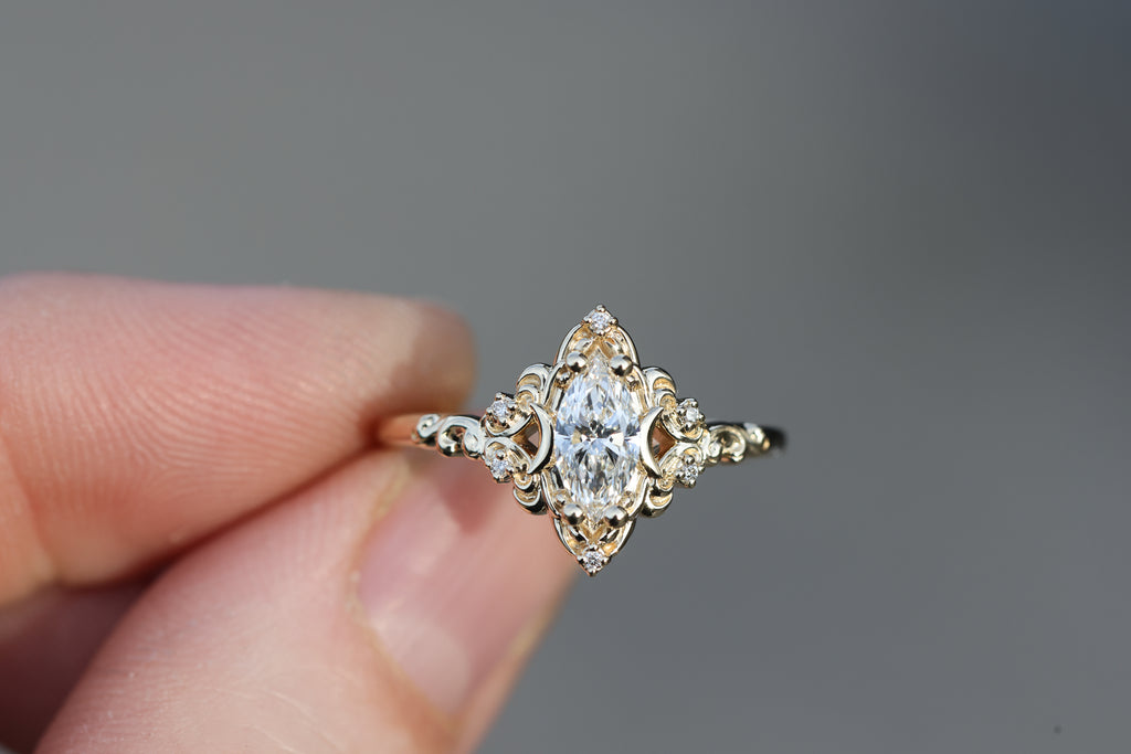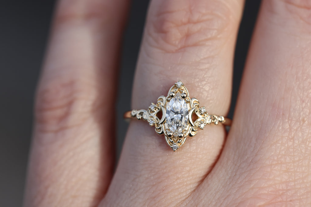 Ready to ship, size 7 14k yellow, Aurora moon with lab diamond