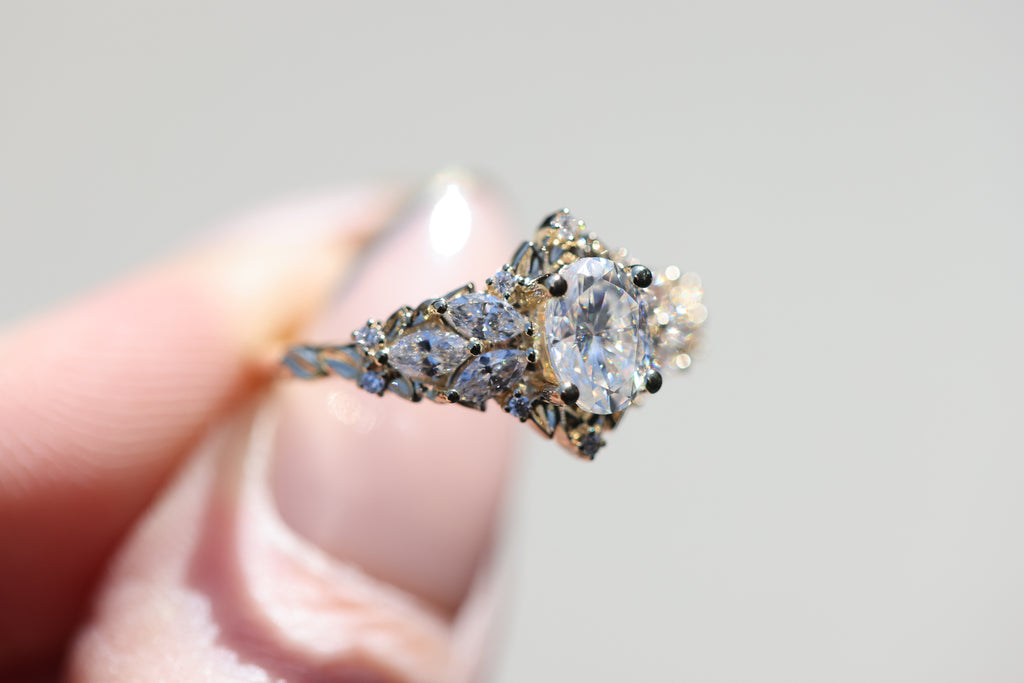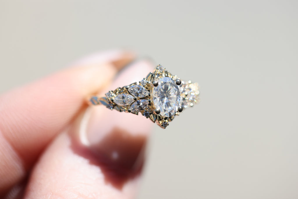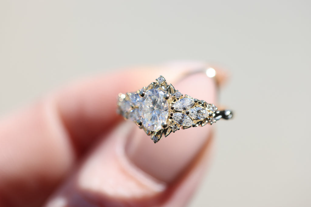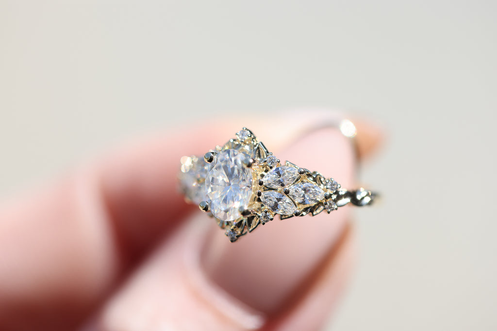 Ready to ship, Size 7 14k yellow Briar rose starlight with moissanite