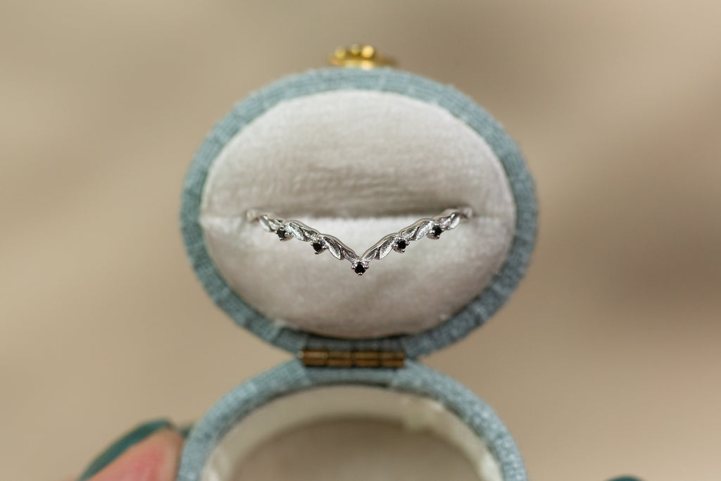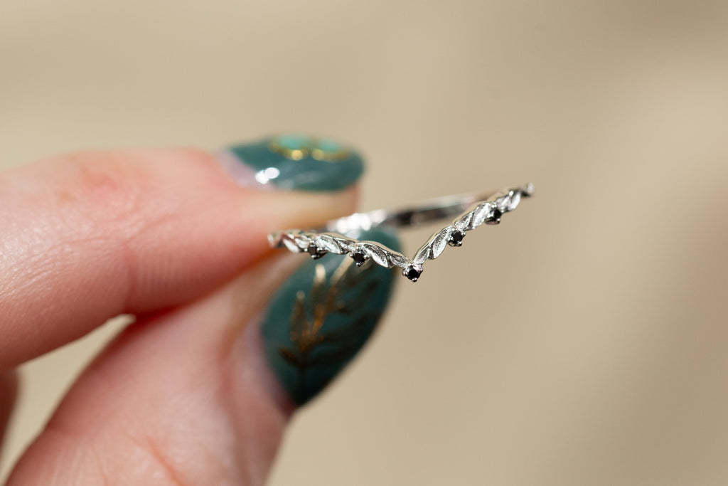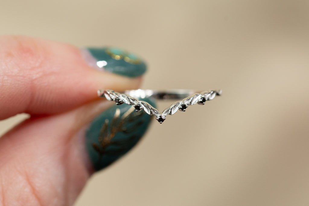 Ready to Ship - Size 7.75, 18k white gold Chevron Leafy Wedding Band