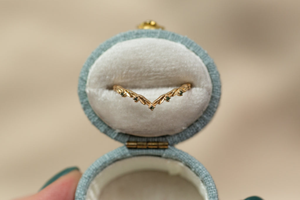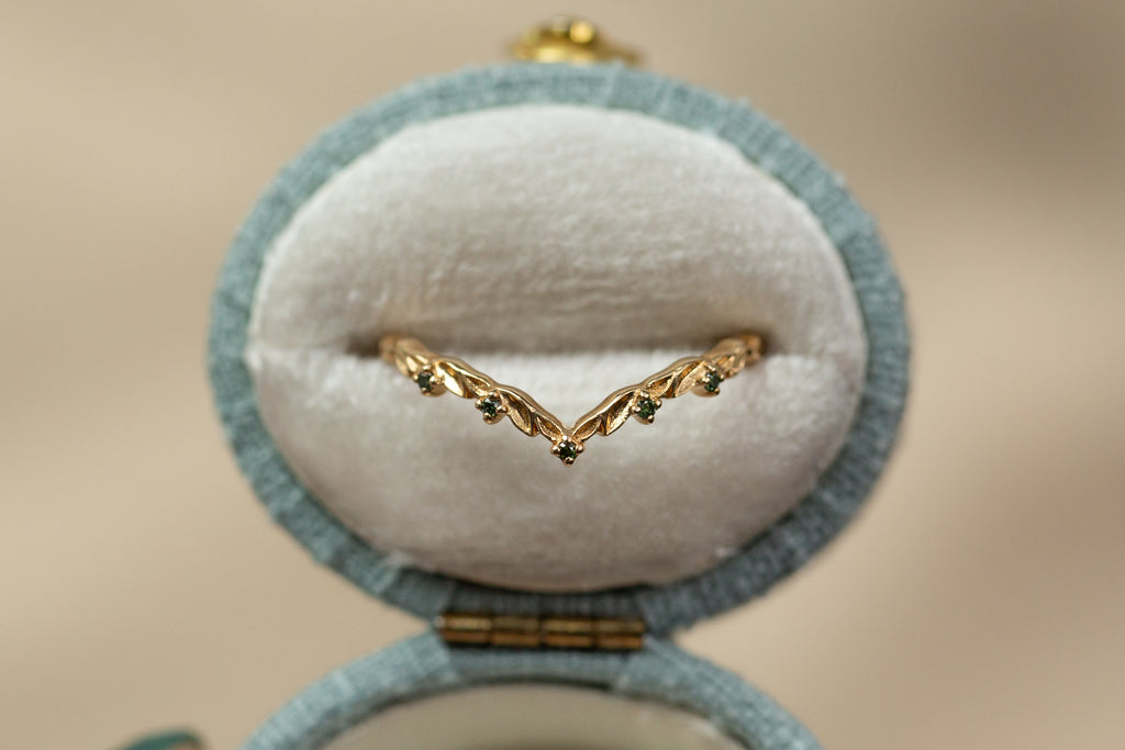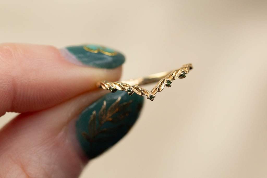 Ready to Ship - Size 4.5, 14k yellow gold Chevron Leafy Band