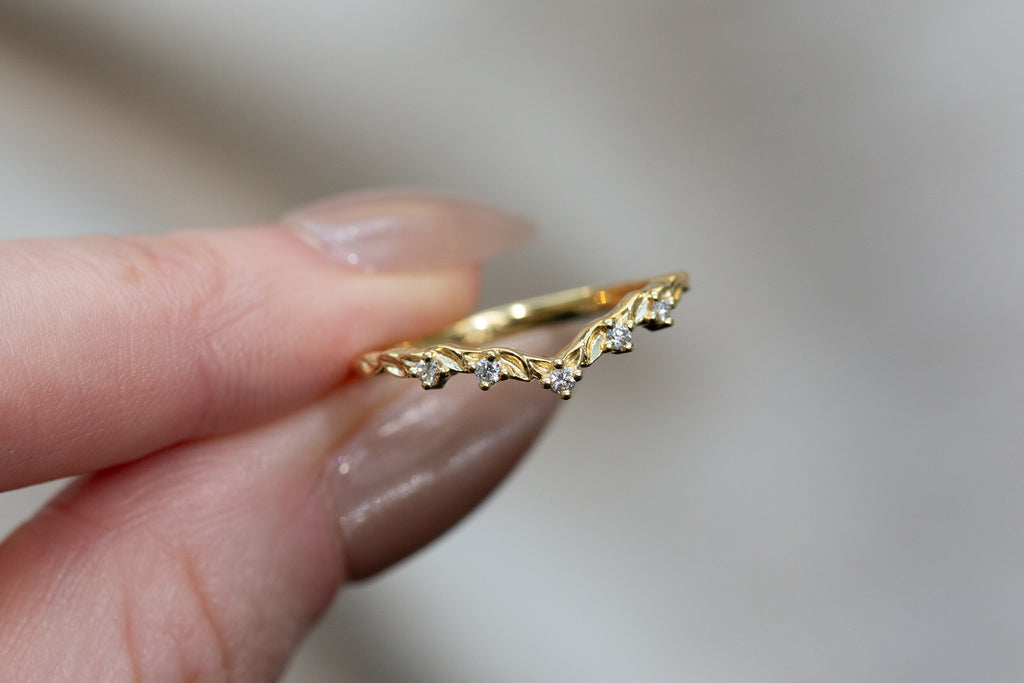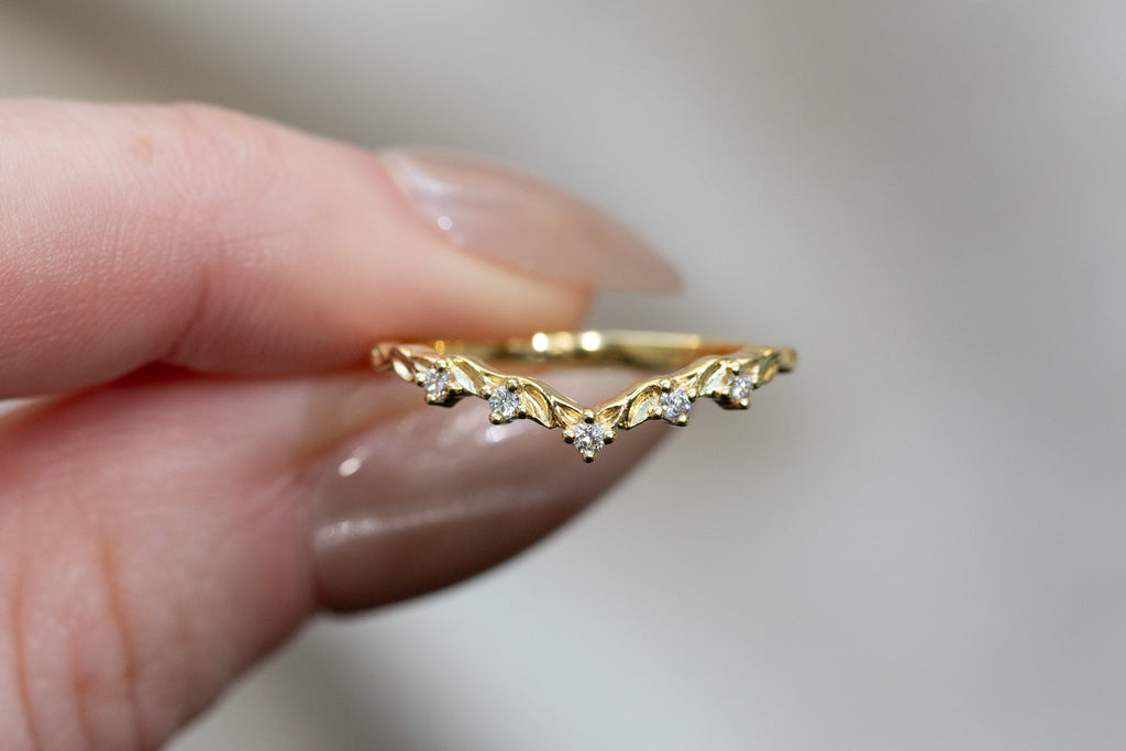 Ready to ship- Size 7.5, 18k yellow gold Chevron Leafy Wedding Band