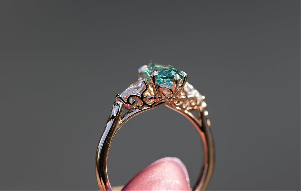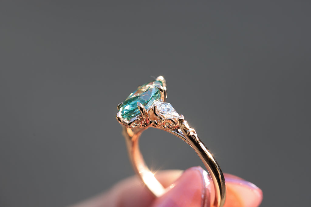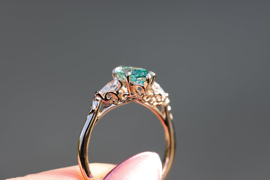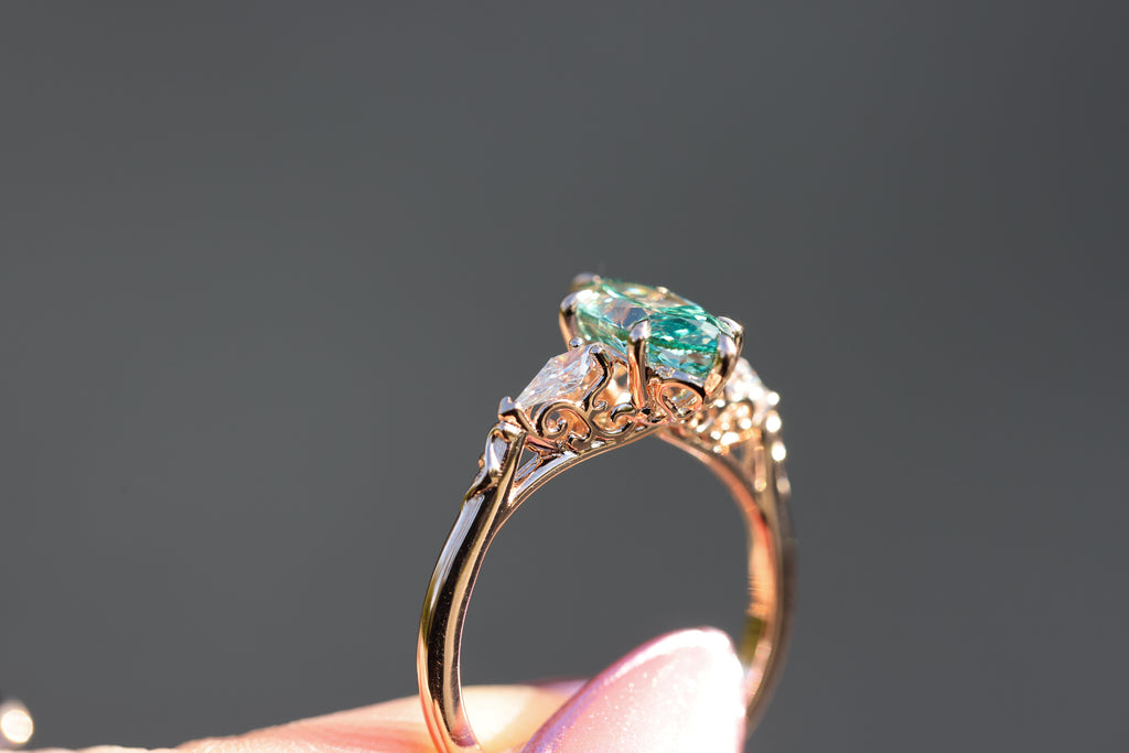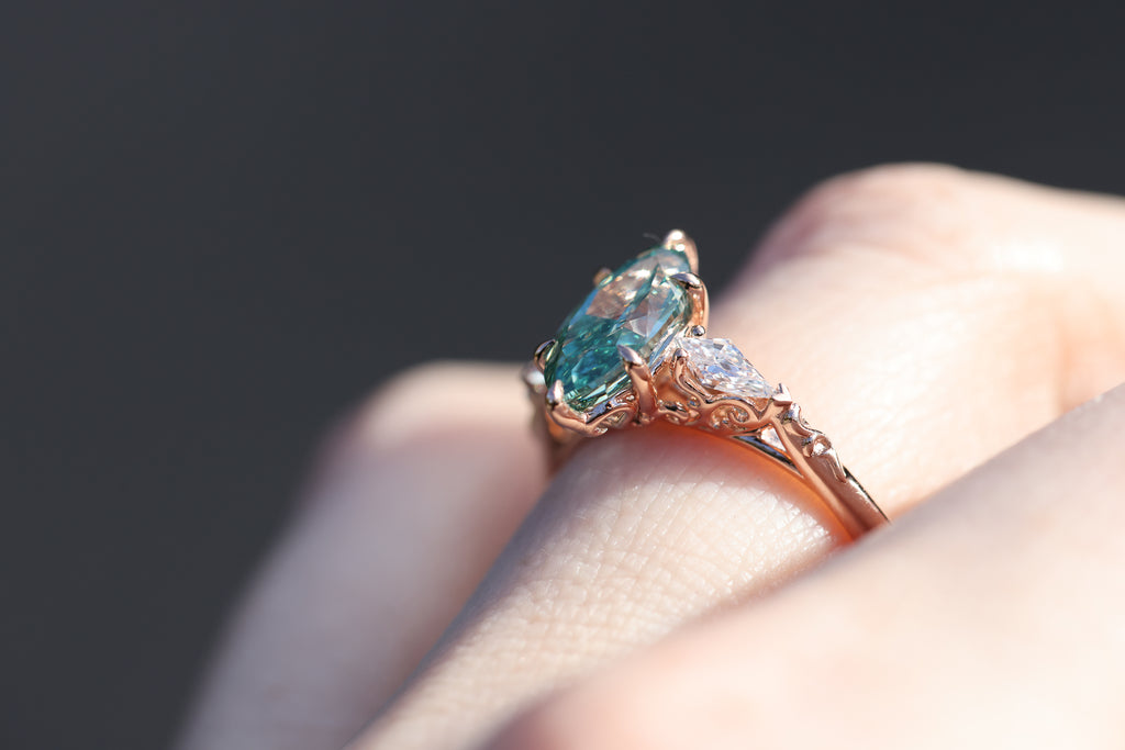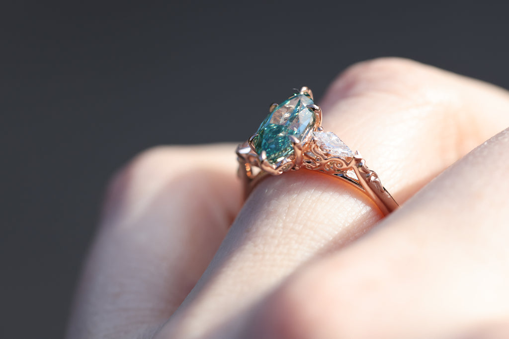 Ready to ship, Size 8 14k rose gold Artemisia with teal lab diamond