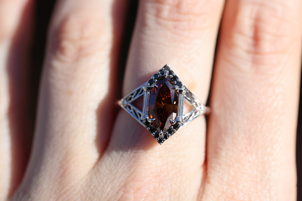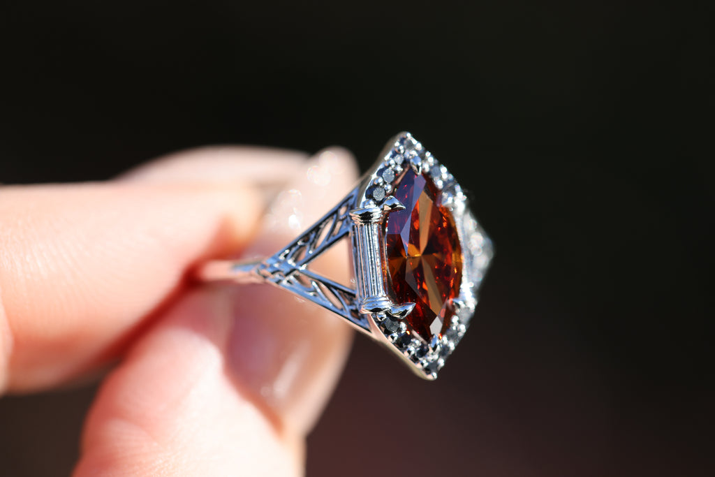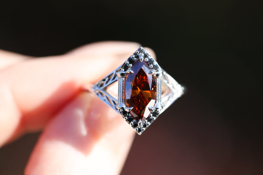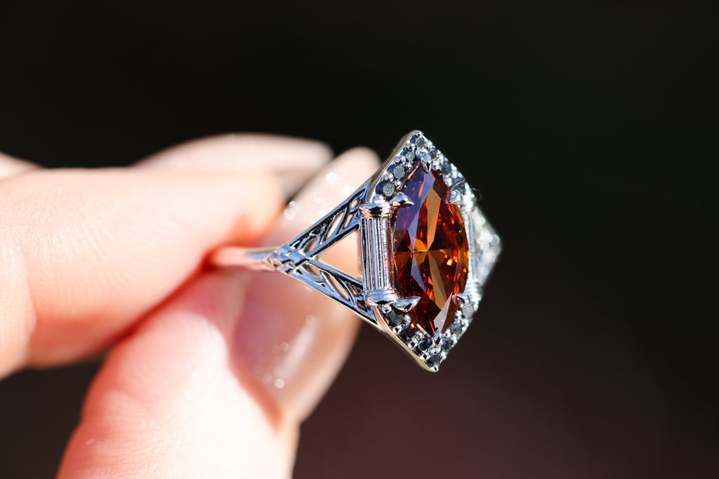 Center: 1.82ct orange red marquise lab diamond VS1 13.23x6.28mm IGI630458915