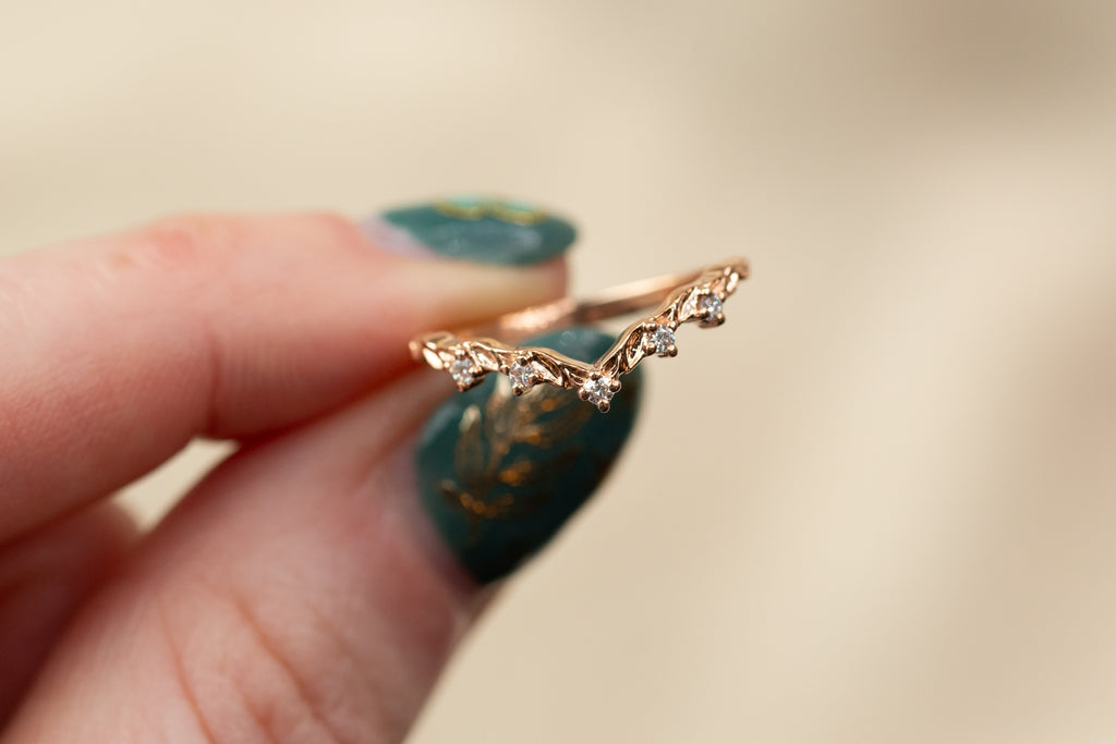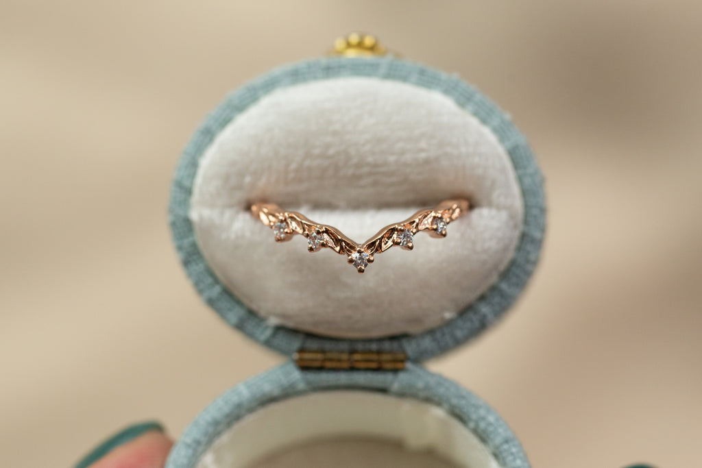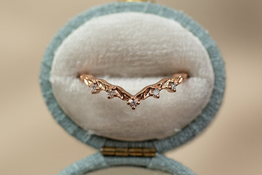 Ready to Ship - Size 5.5, 14k rose gold Chevron Leafy Band with 1.5mm accents