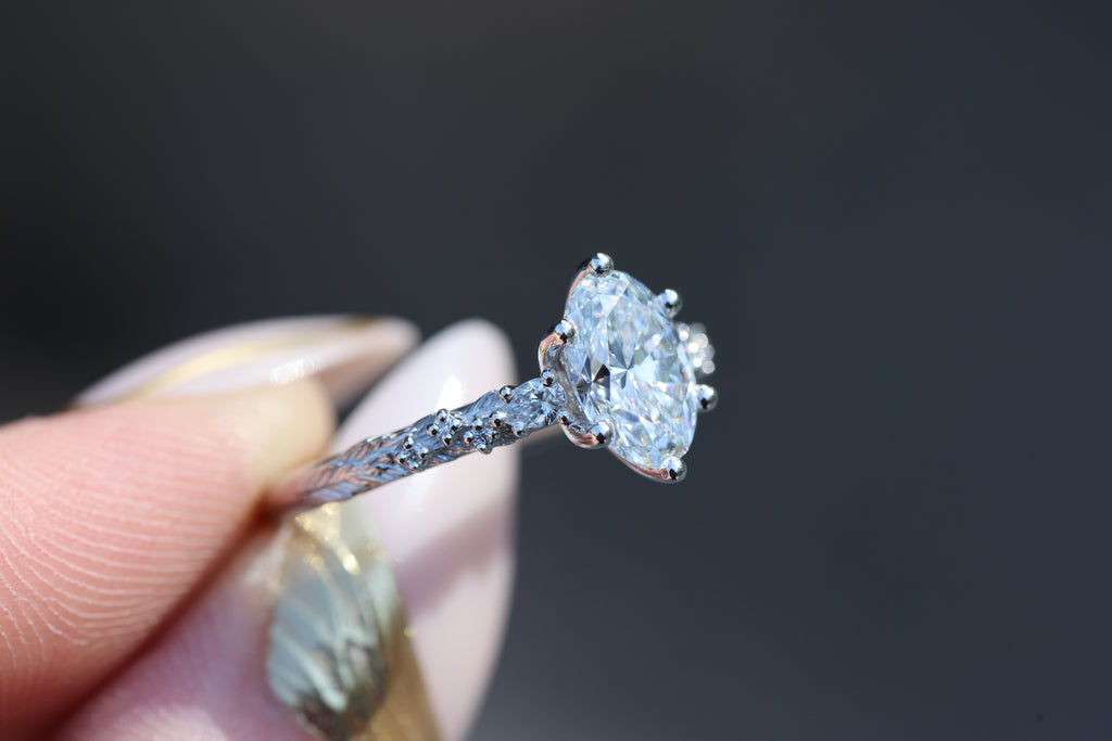 - Please note, some precious cut/fantasy cut gemstones (Starbrite, Regal Radiant, etc.) are cut too deep to fit well in this setting. If you are interested in using one of these gemstones as your center stone, please just send us an email at help@oorejewelry.com to discuss further!