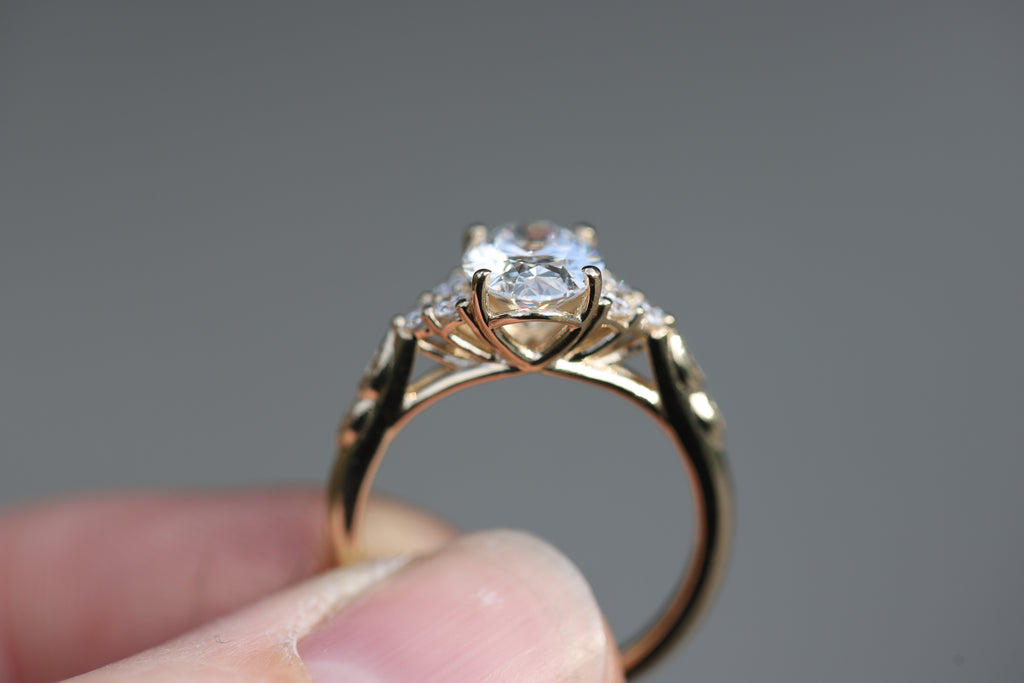- Small leaf accents on shoulder of setting (can be removed if you prefer)