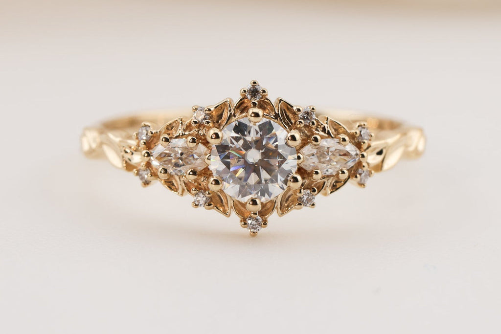 Customize your own 7x5mm oval Briar Rose Three Stone with round side stones